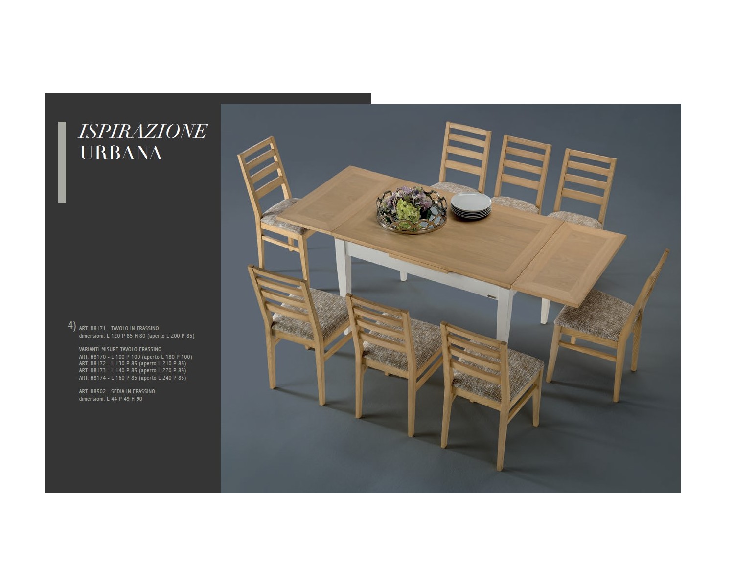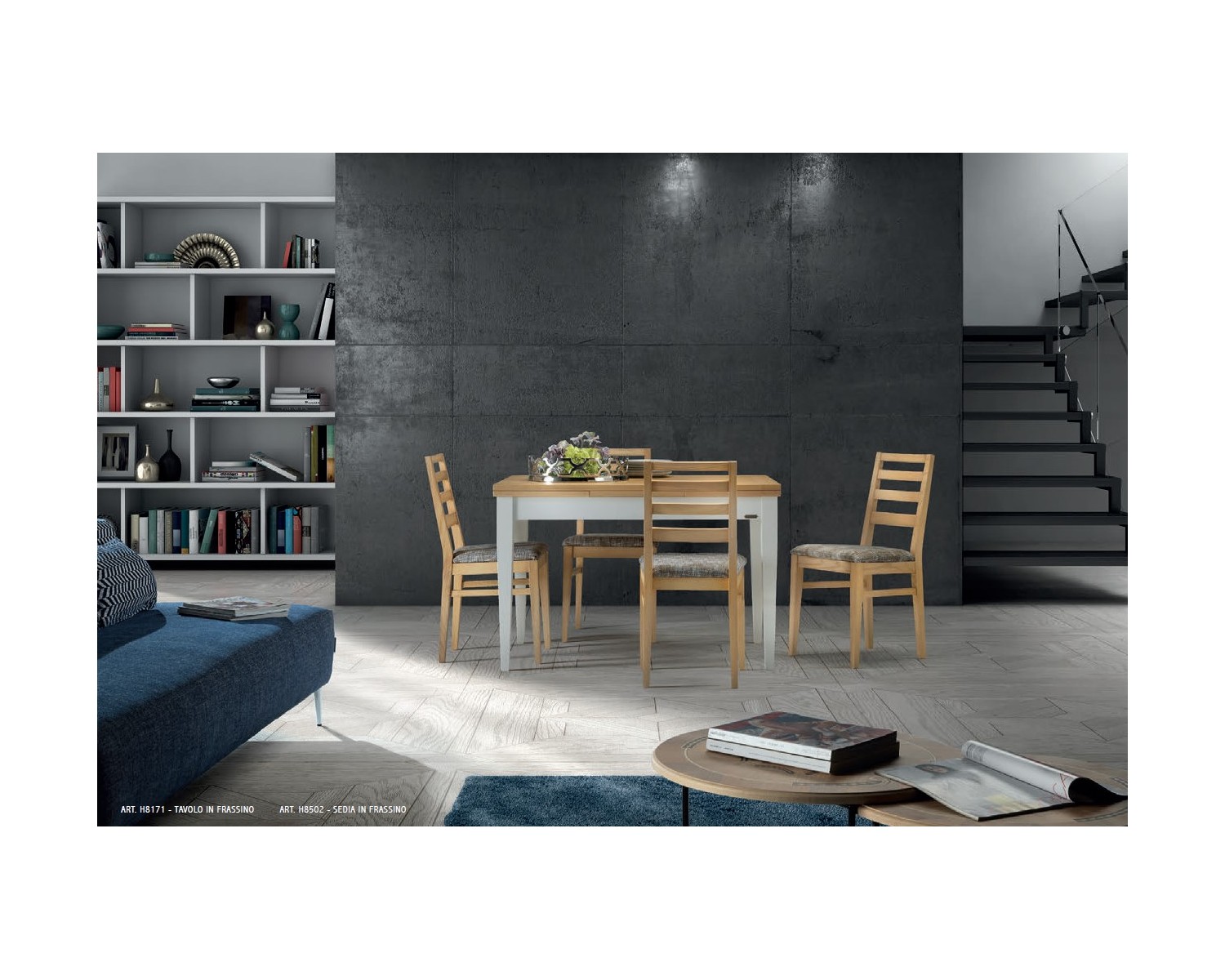 Tavolo in frassino con 2 allunghe estraibili ai lati da 40 cm gamba spillo L.120 P.85 H.80 (aperto L.200 P.85)