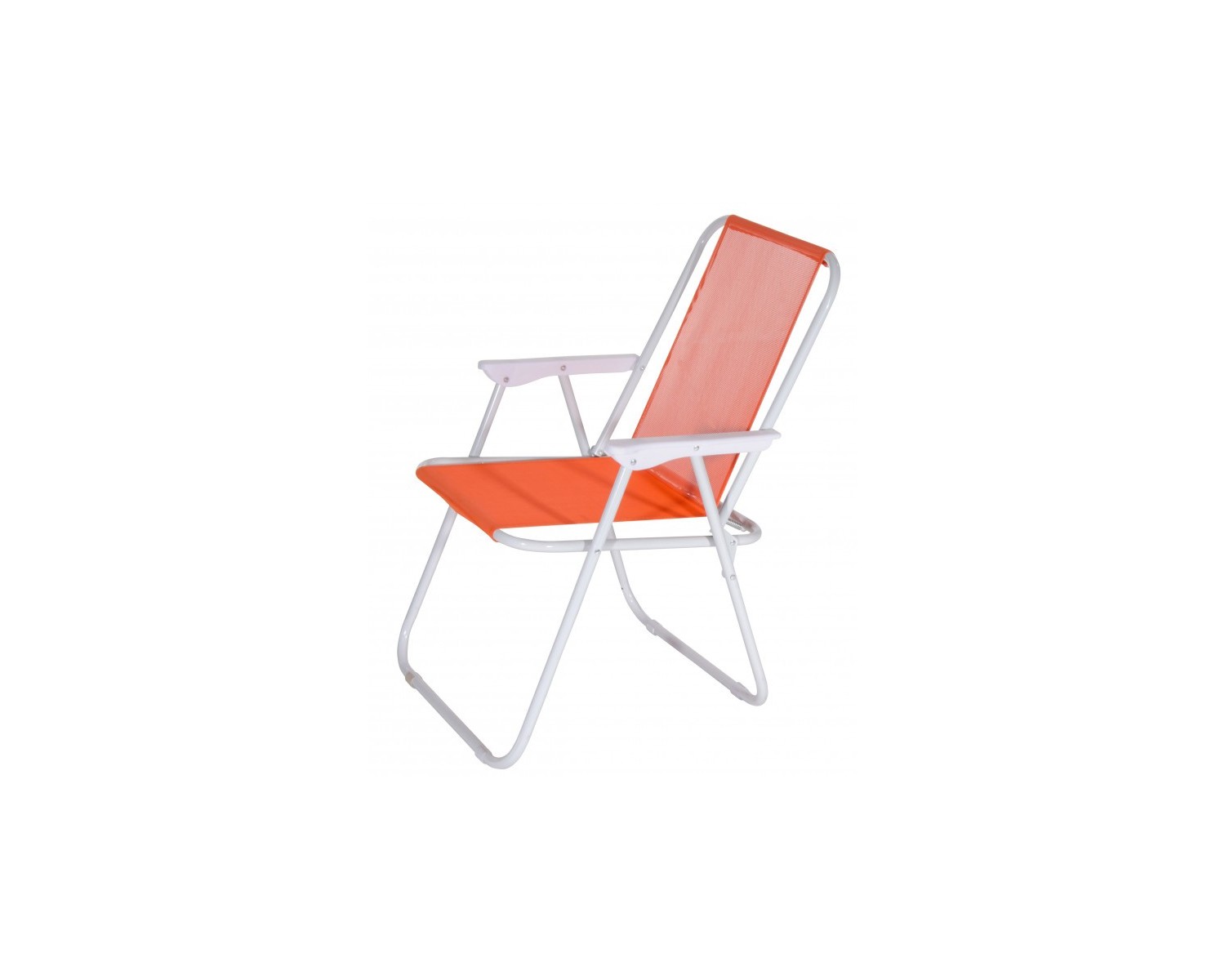 Sedia pieghevole con struttura in tubo di acciaio verniciato 18 mm. Seduta e schienale in textilene 1x1. Poggia braccio in plastica. Disponibile in 3 varianti colore bianco/blu, verde e aranzione . Dimensioni: 54x44 cm - H. 75 cm. Portata massima 110 Kg.