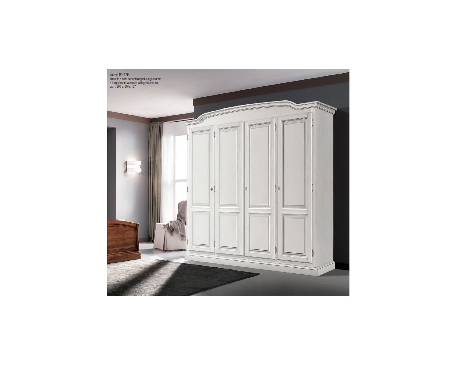 GABINETE Campo 4 puertas en madera TAMAÑO L 206 P 55 H 197 - Color Blanco o marfil - momento de la producción 20 DÍAS - Made in Italy -