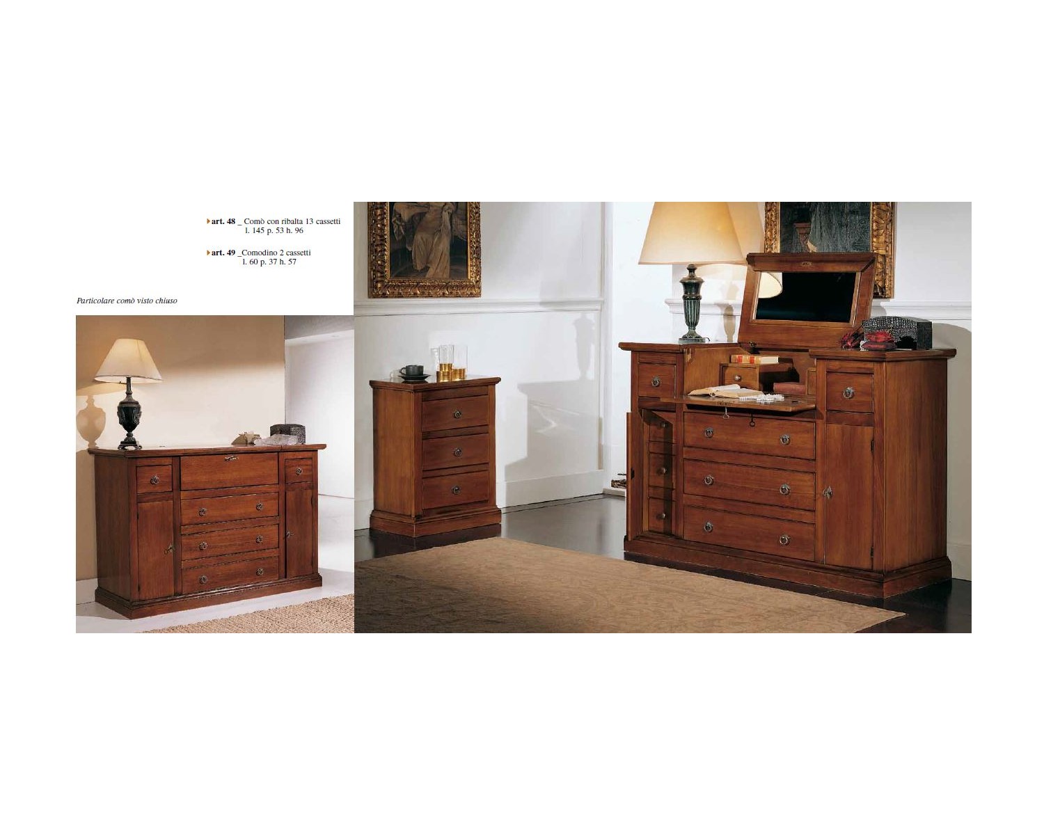 Como conjunto que consta de 3 cajones con solapa y 2 puertas laterales 2 2 mesas en acabado nogal macizo 3 cajones y aglomeración artesanía excelente calidad de imagen de 20/25 días los tiempos de envío de entrega en toda Italia DIMENSIONES Com L 144 P 54 H 95 de cabecera L 55 P 54 H 95