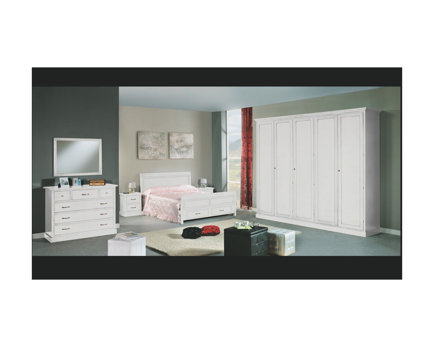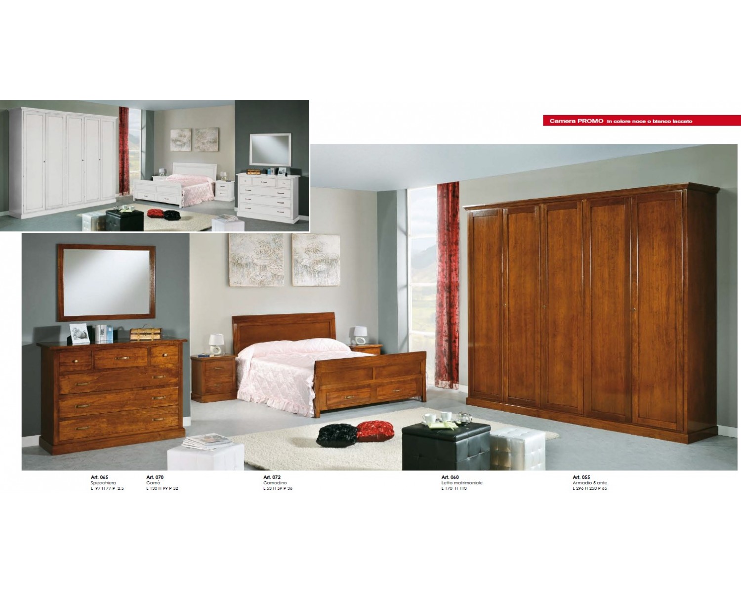 Dormitorio completo sólido Tamaño MADERA COL BLANCO: BED 170XH110 - COMODINI 53X36 H 59 - COMO 130X52 H 99 SPECCHIERA 97X2,50 H 77 - Puertas de cabina 5 L 296 P 65 H 250 a momento de la producción de 25 días - Made in Italy VARIOS COLORES EN LA PRODUCCIÓN