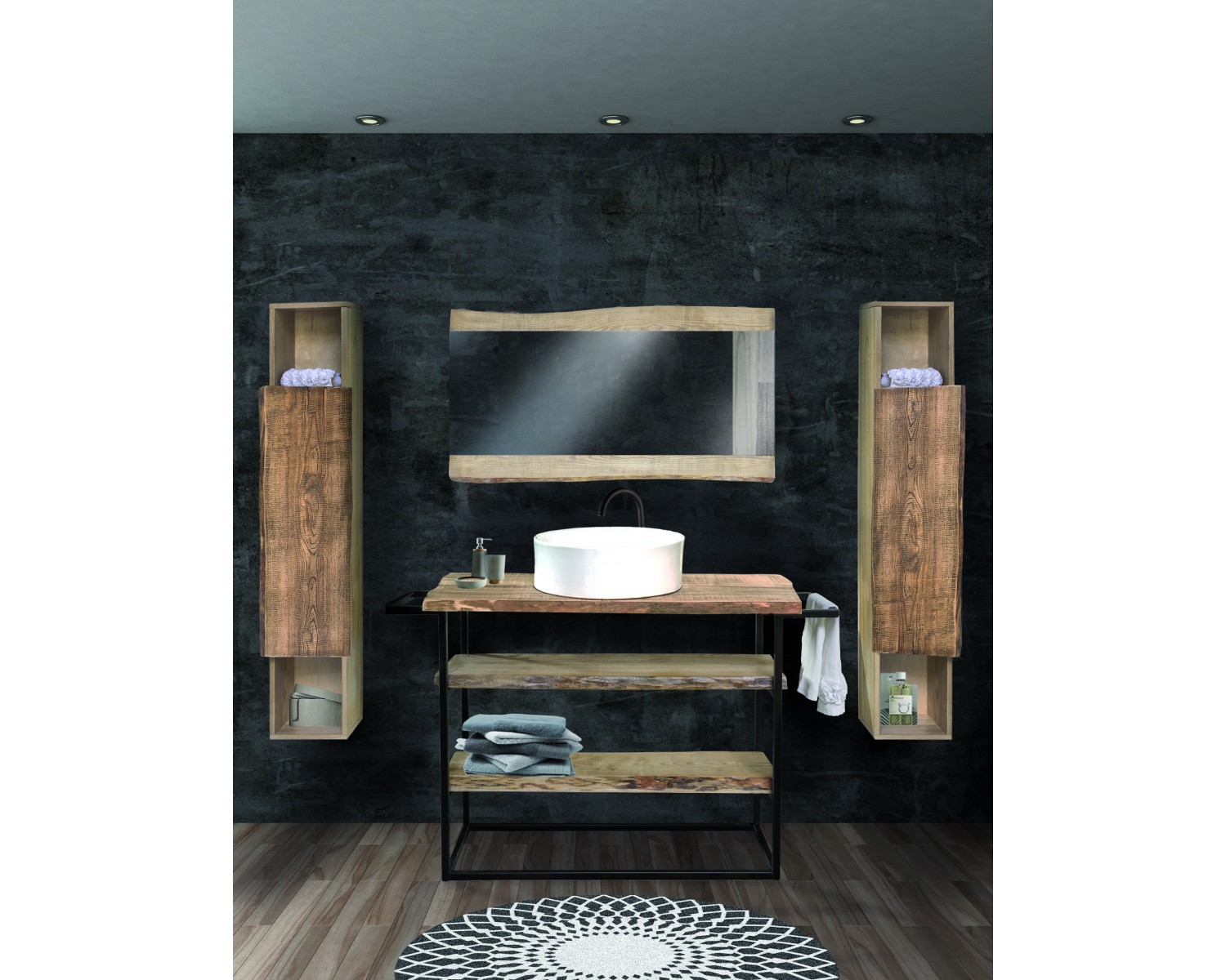 MOBILE BAGNO 3 RIP T. NATURALE, LAVELLO PICCOLO, GAMBE ACCIAIO ANTRACITE
