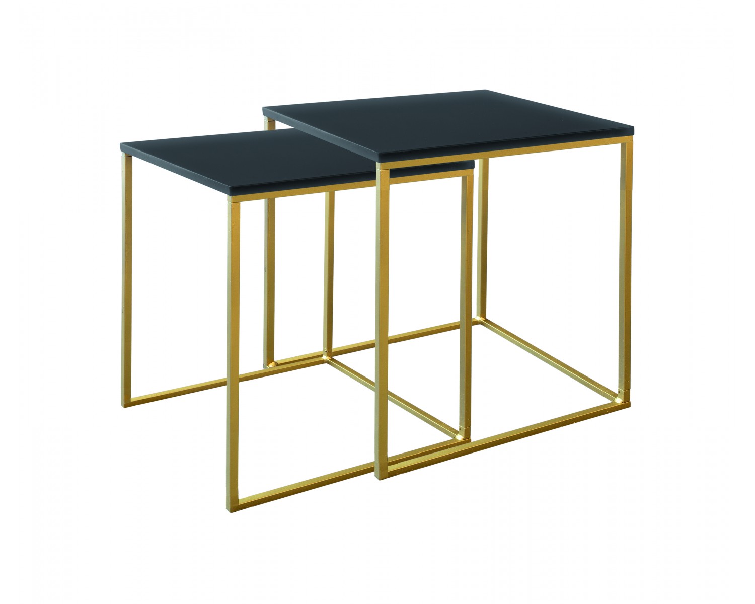 SET 2 TAVOLINI TOP VETRO NERO E OTTONE40x40x42