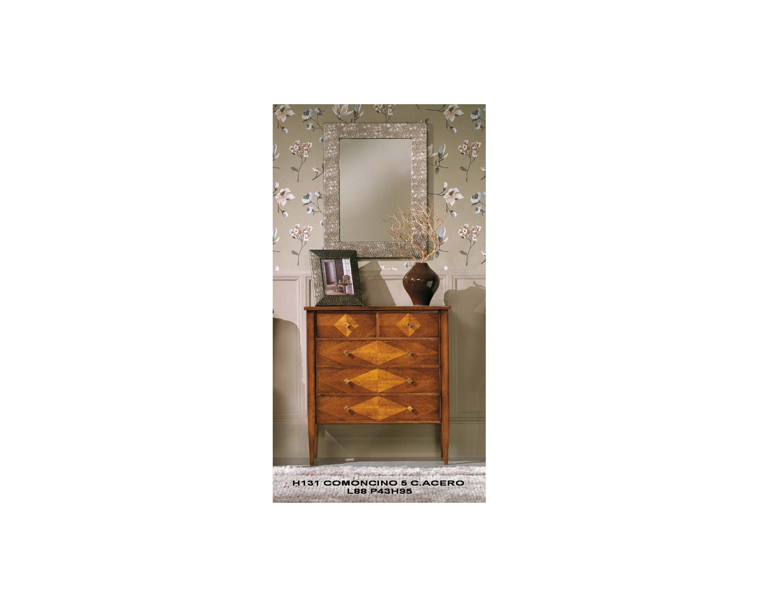 COMONCINO 5 CASSETTI CON INTARSIO ROMBO IN ACERO L.88 H.95 P.43