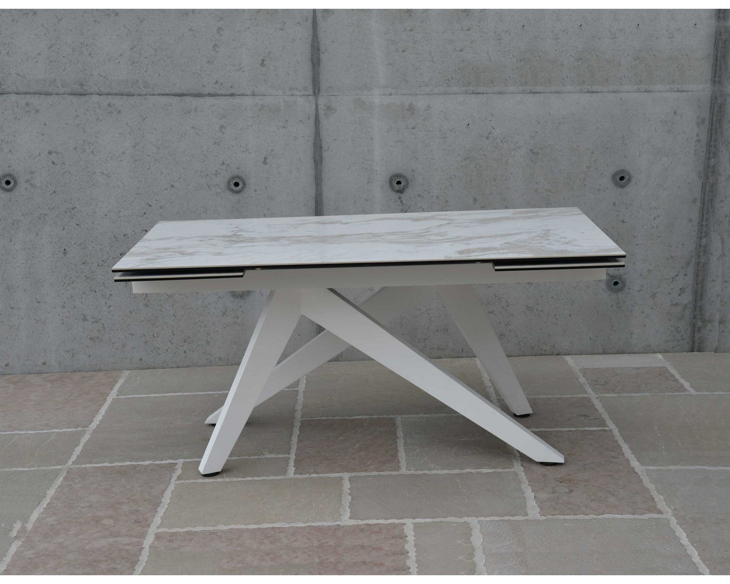 Tavolo ceramica finitura marmo bianco 160x90 2 all. cm. 40