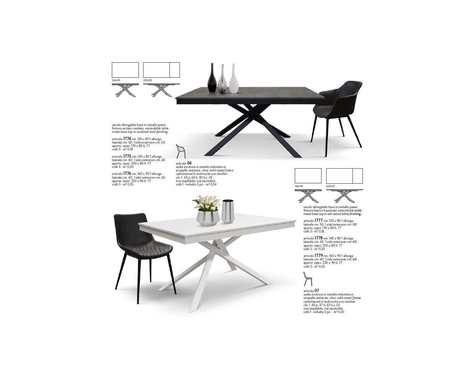 Tavolo allungabile 160x90 con 1 all. cm. 60 base metallo e piano finitura acciaio ossidato