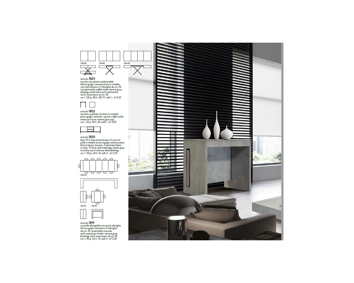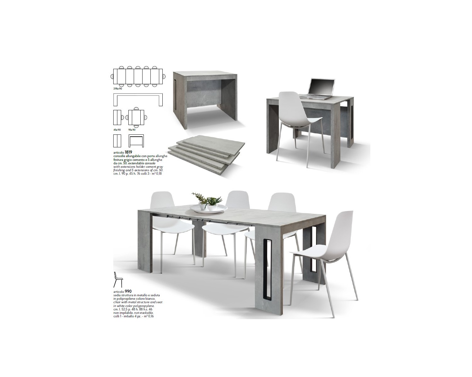 Consolle allungabile 90x45 con 5 all. cm. 50 finitura grigio cemento