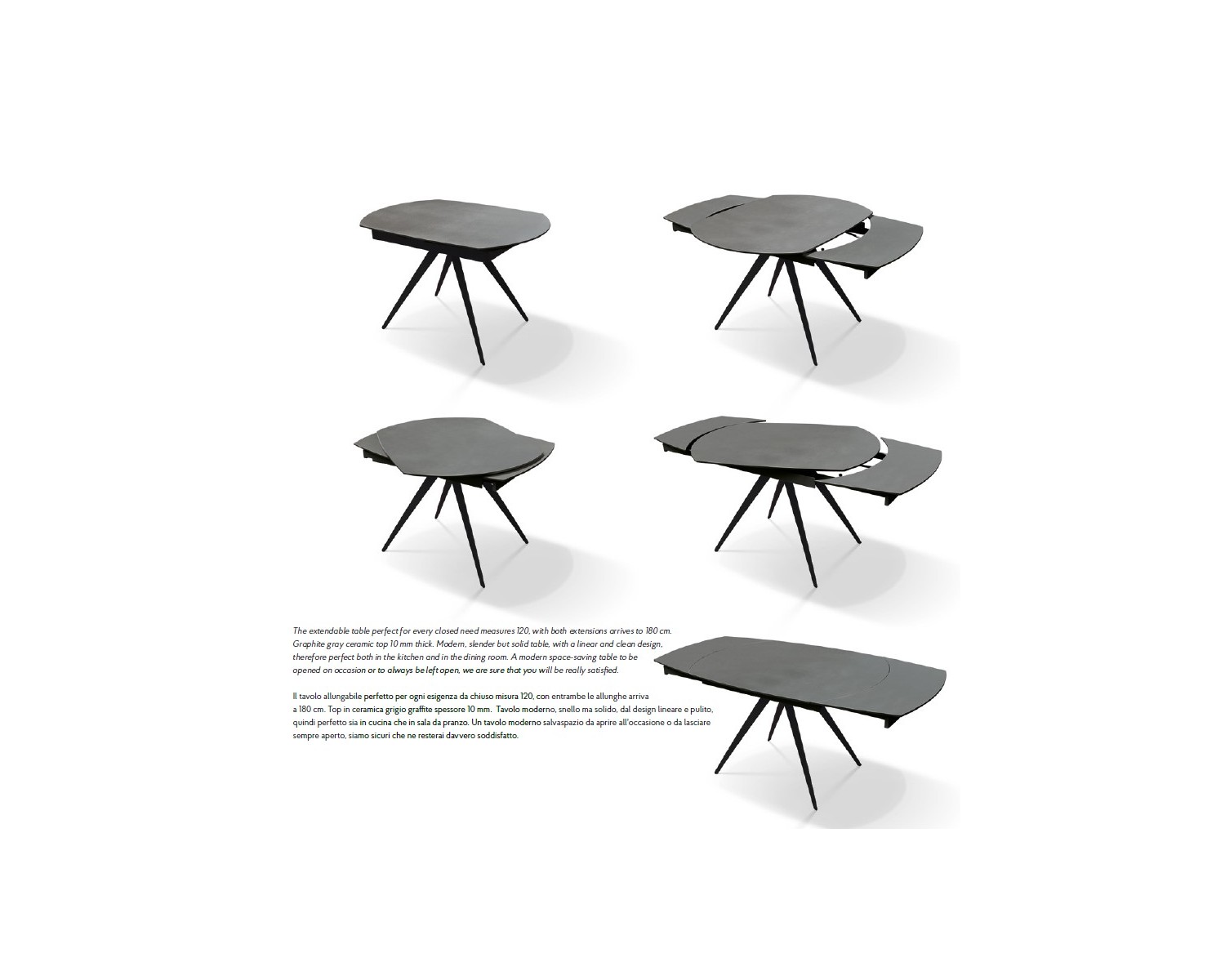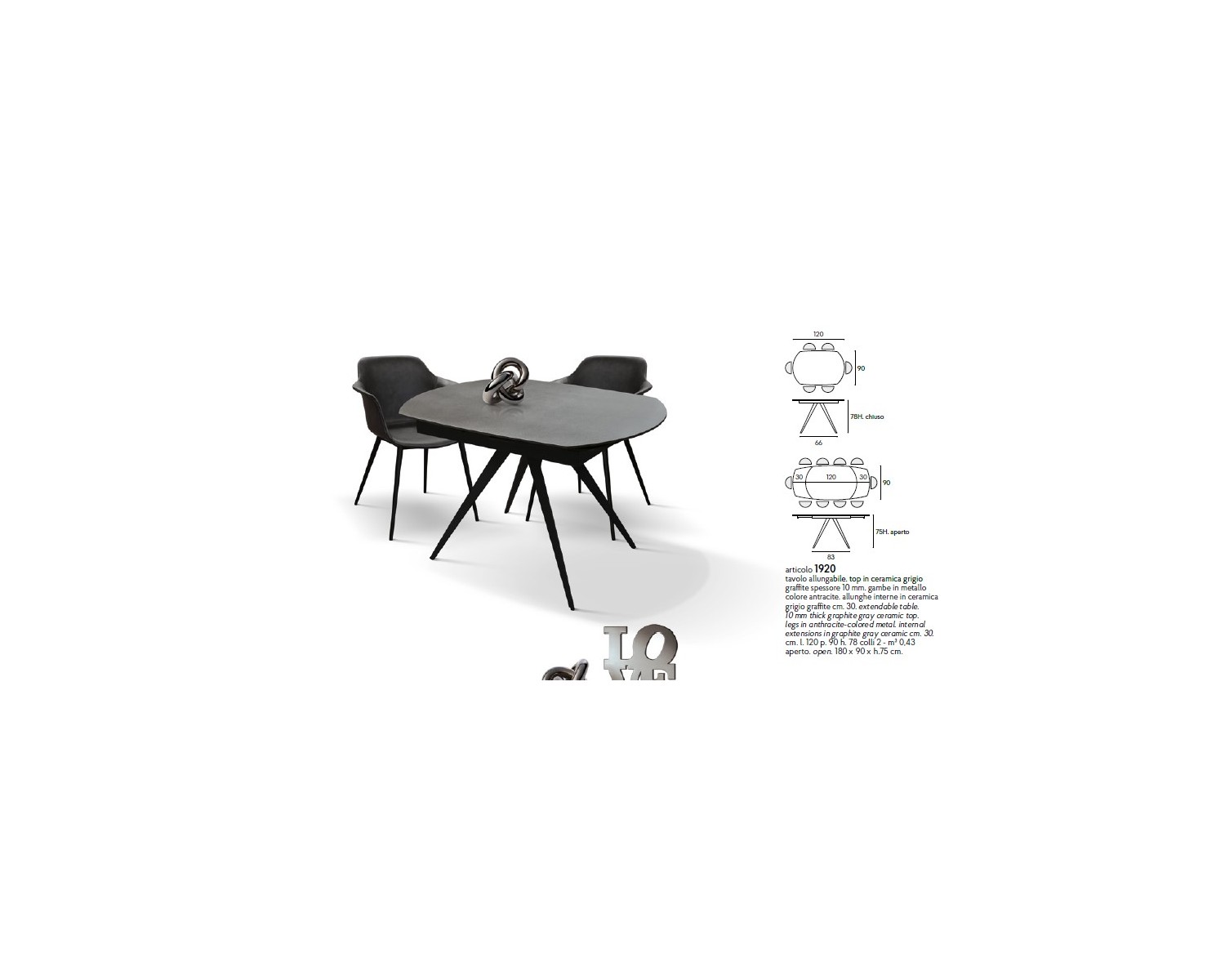 Tavolo allungabile rotante 120x90 con 2 all. cm. 30 base metallo piano grigio graffite
