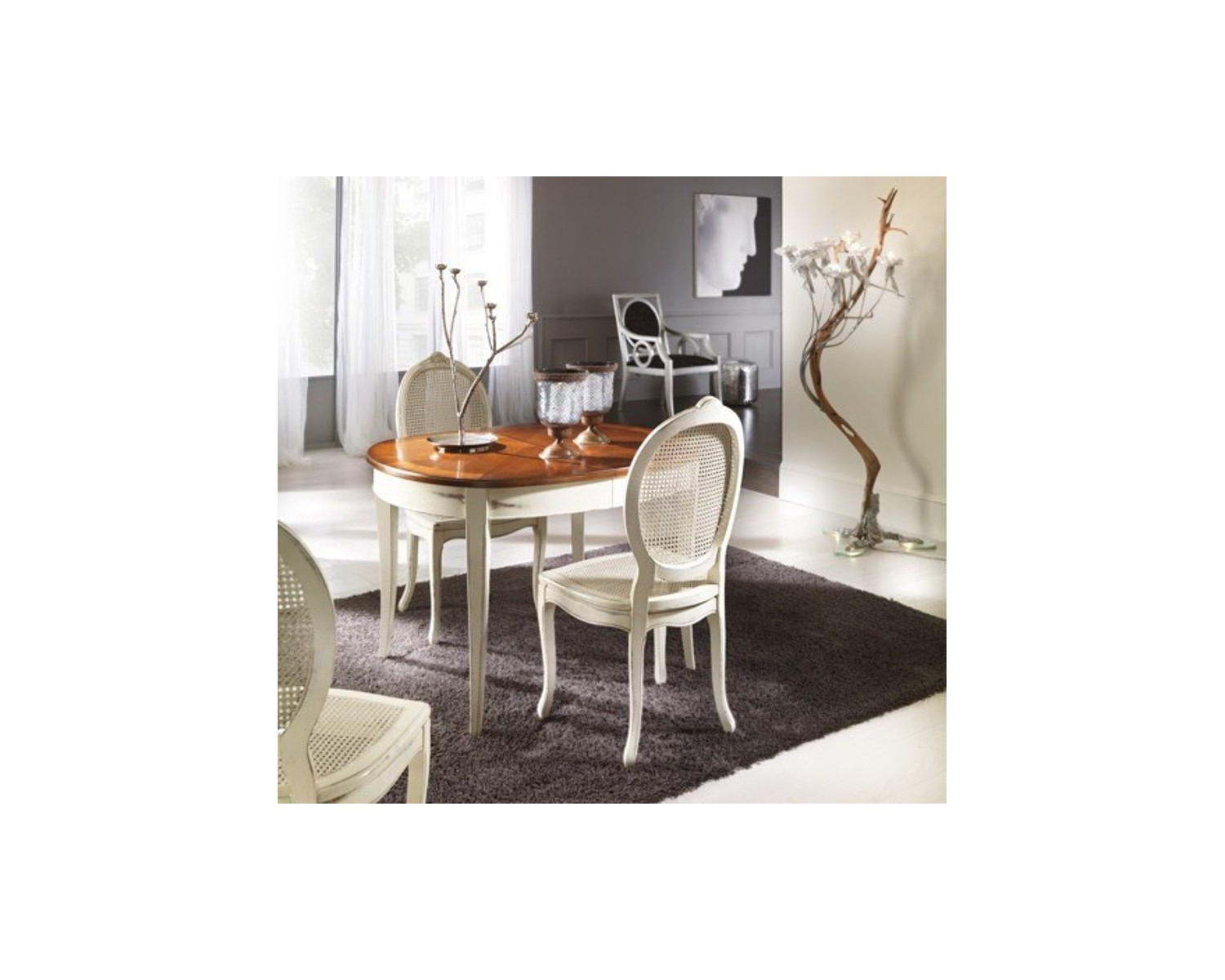 mesa extensible oval con incrustaciones de madera de nogal y el hilo mesa extensible y de dos tonos con 2 extensiones de 44 cm veneciana excelente calidad, la artesanía, tiempo de entrega 15/20 días de envío en toda Italia DIMENSIONES L 115 P 203 P 95 L 95 abierto SILLAS EN EURO SOLICITUD 297