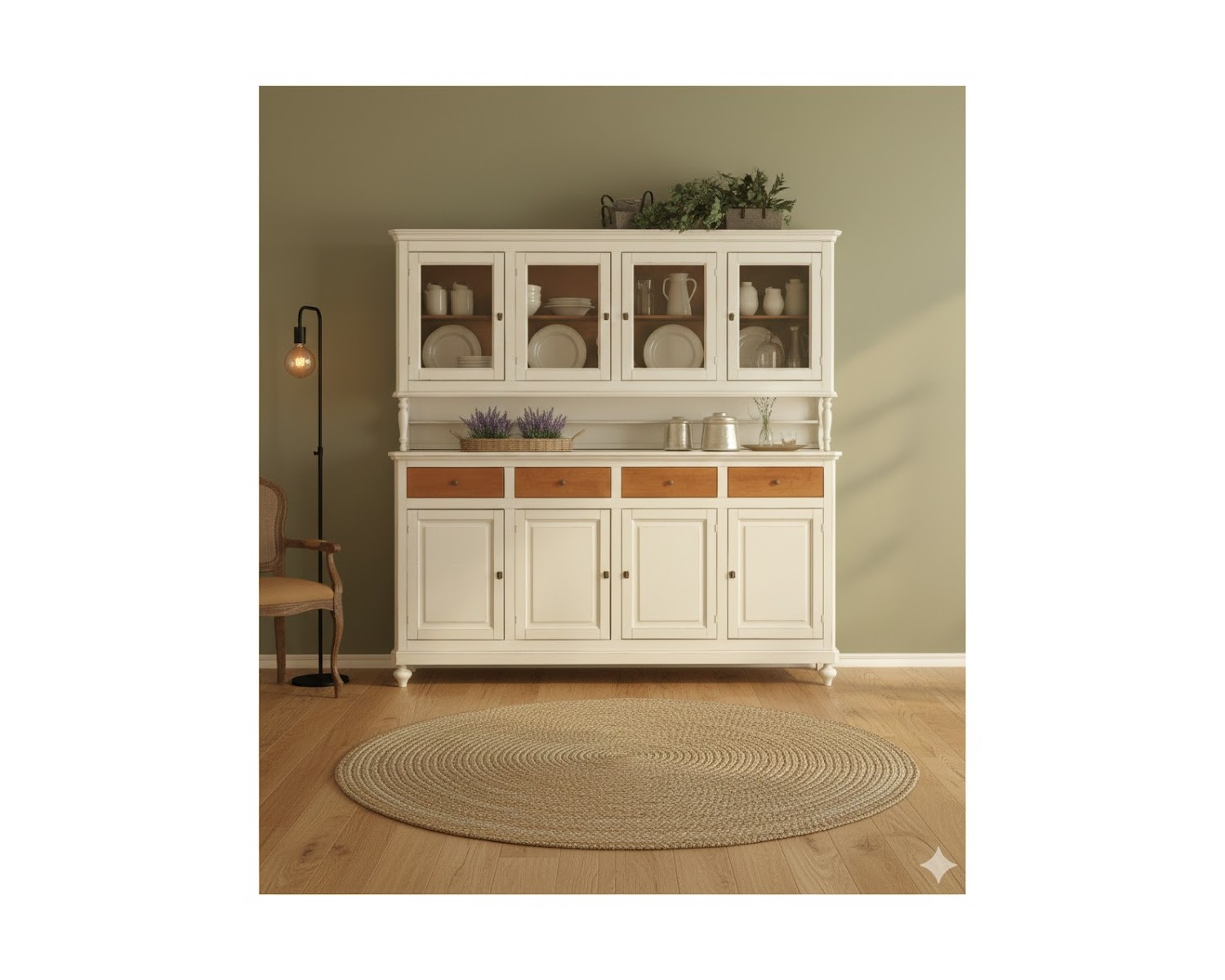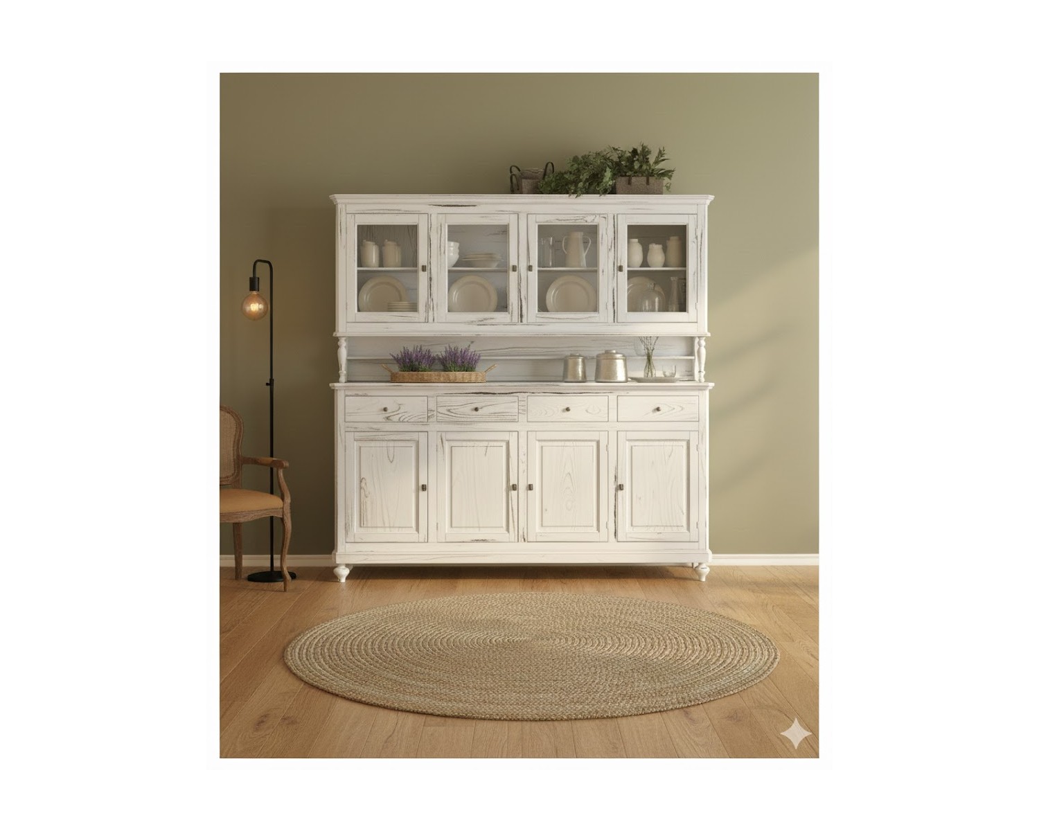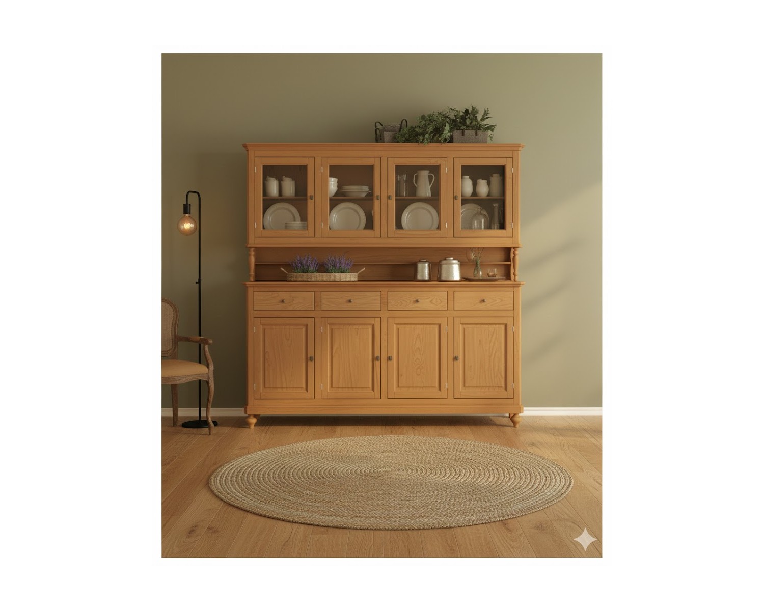 credenza vetrina country in legno massello di grande dimensione L 214