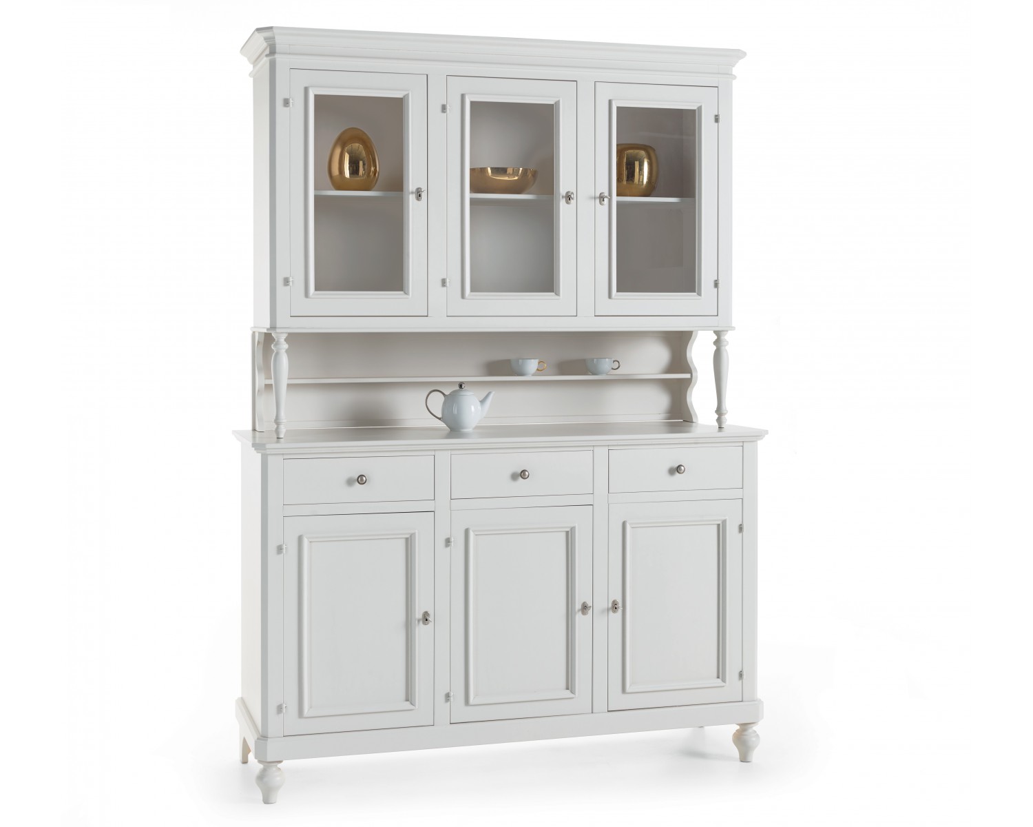 Armario BASE + ALZATA L 160 P 50 H 221 VENTANA en madera maciza COL BLANCO