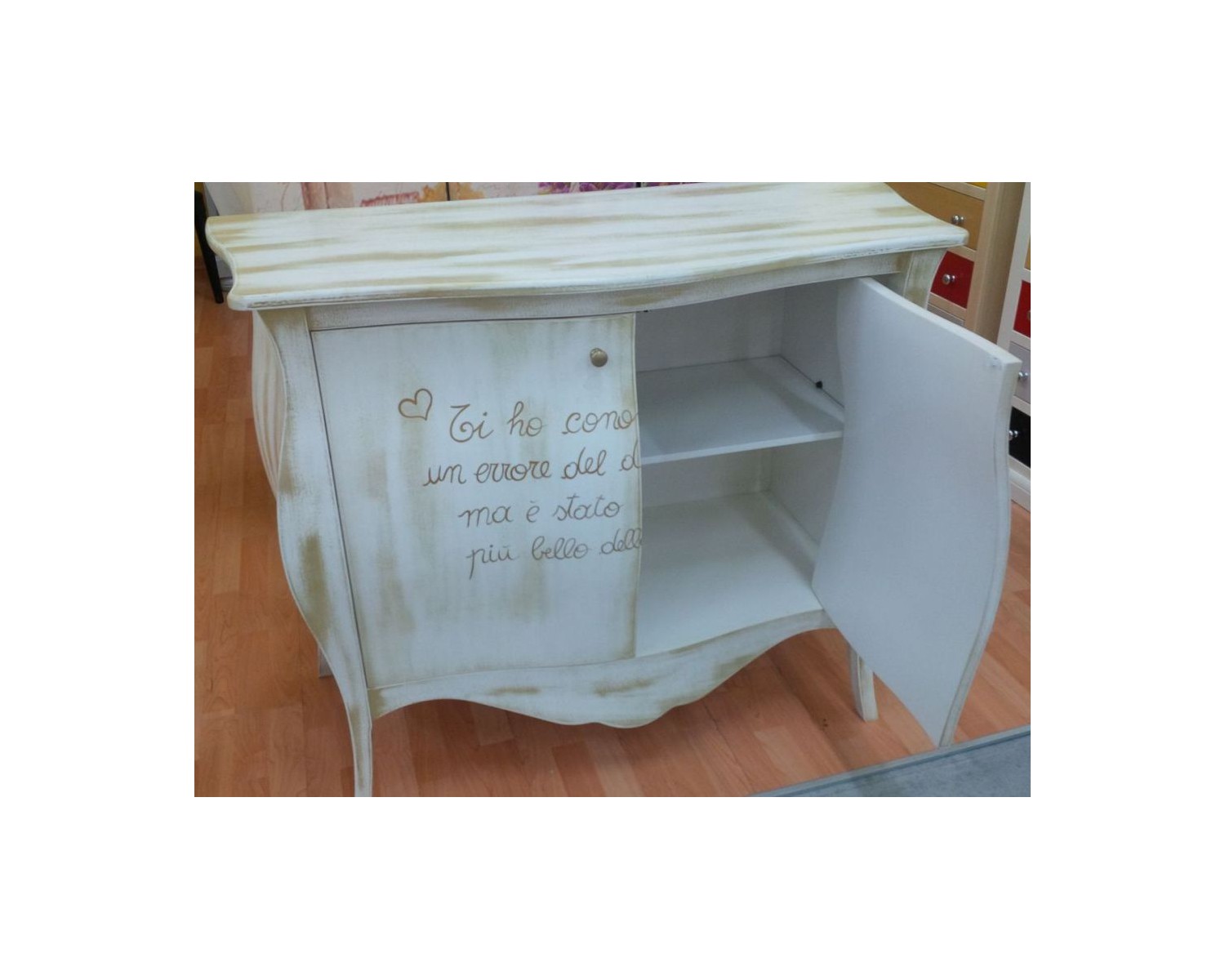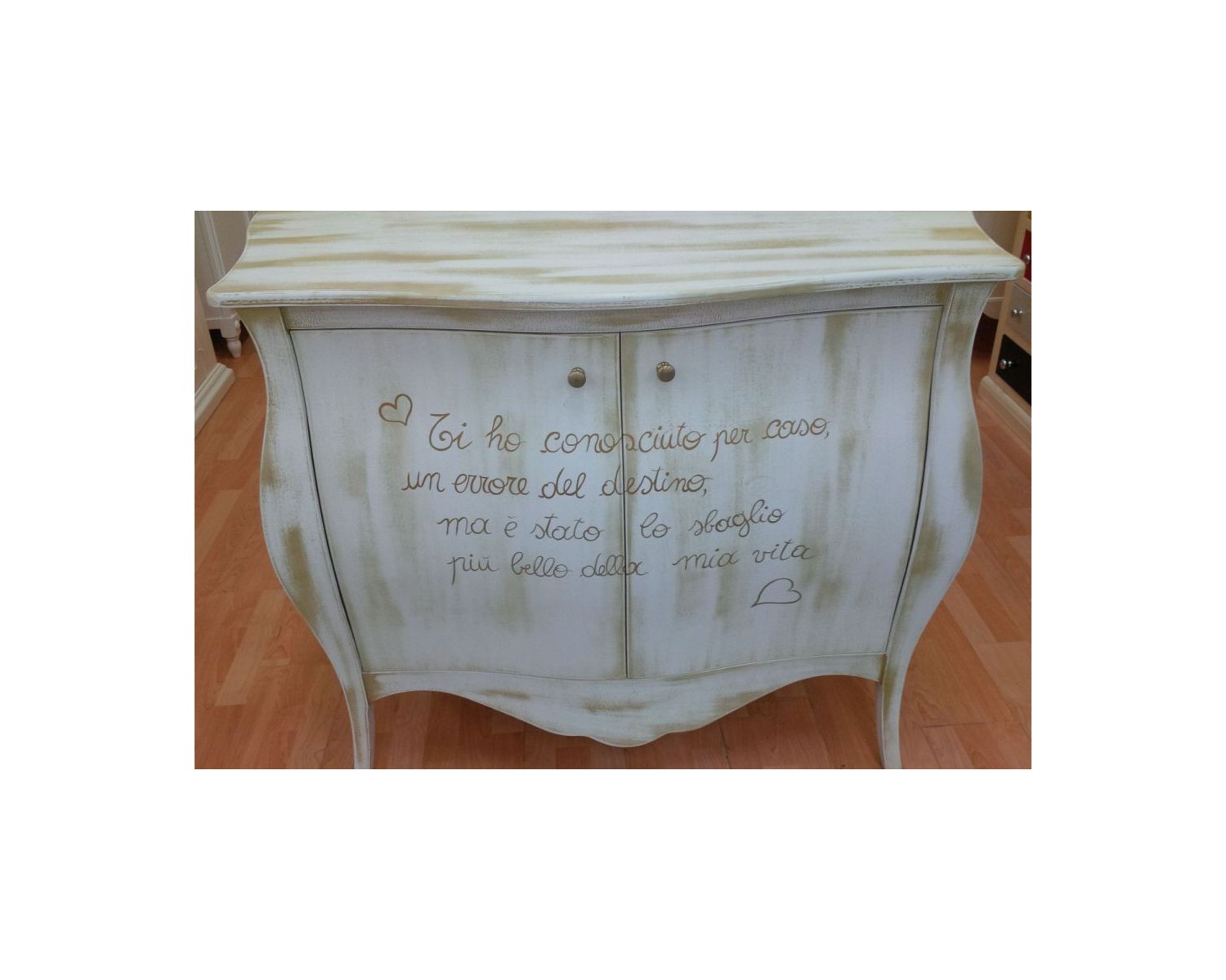 aparador armario redondeado de color marfil antiguo de madera maciza con tonos de oro.