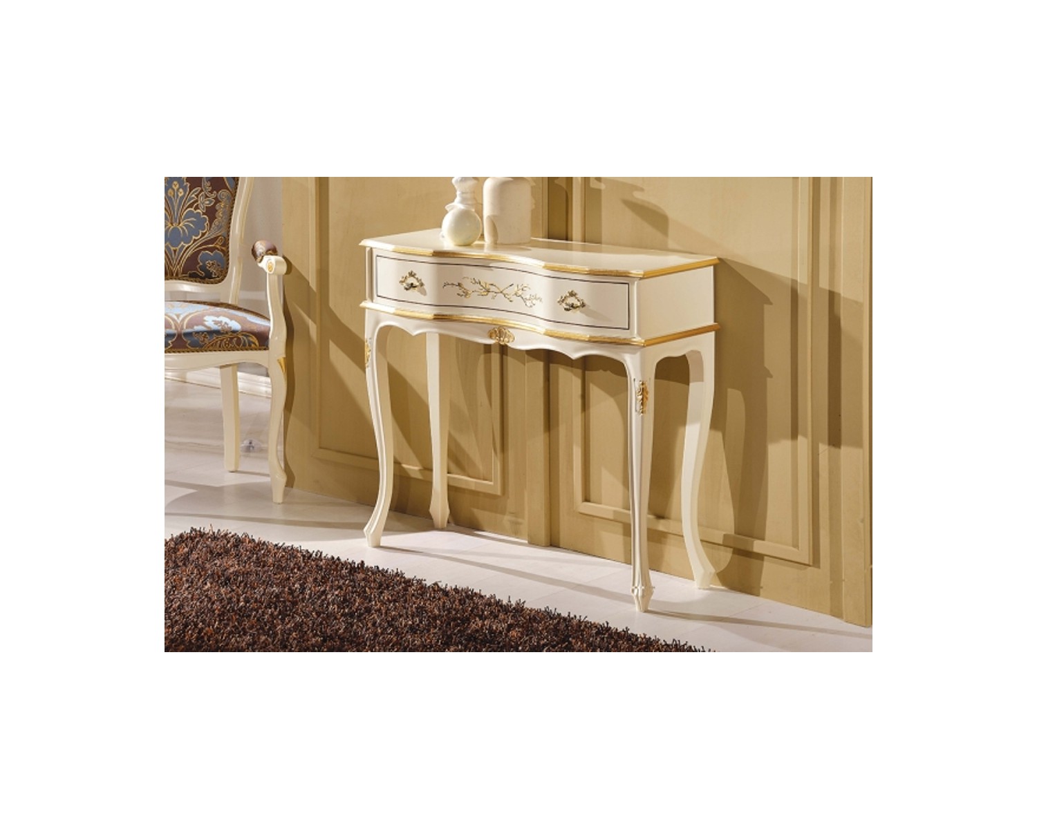 CONSOLA 1 cajón de madera ADORNADO MATT ORO BLANCO AS foto - DIMENSIONES L87 P33 H80 - Made in Italy - PRODUCCIÓN TIMES 20