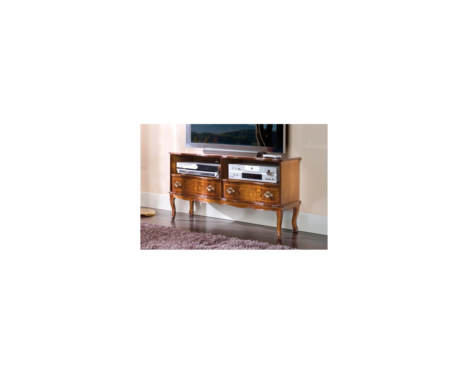SOPORTE DE TV CON 2 CAJONES incrustaciones de madera color nogal COMO FOTO - DIMENSIONES L110 P36 H61 - Made in Italy - PRODUCCIÓN DE VECES 20