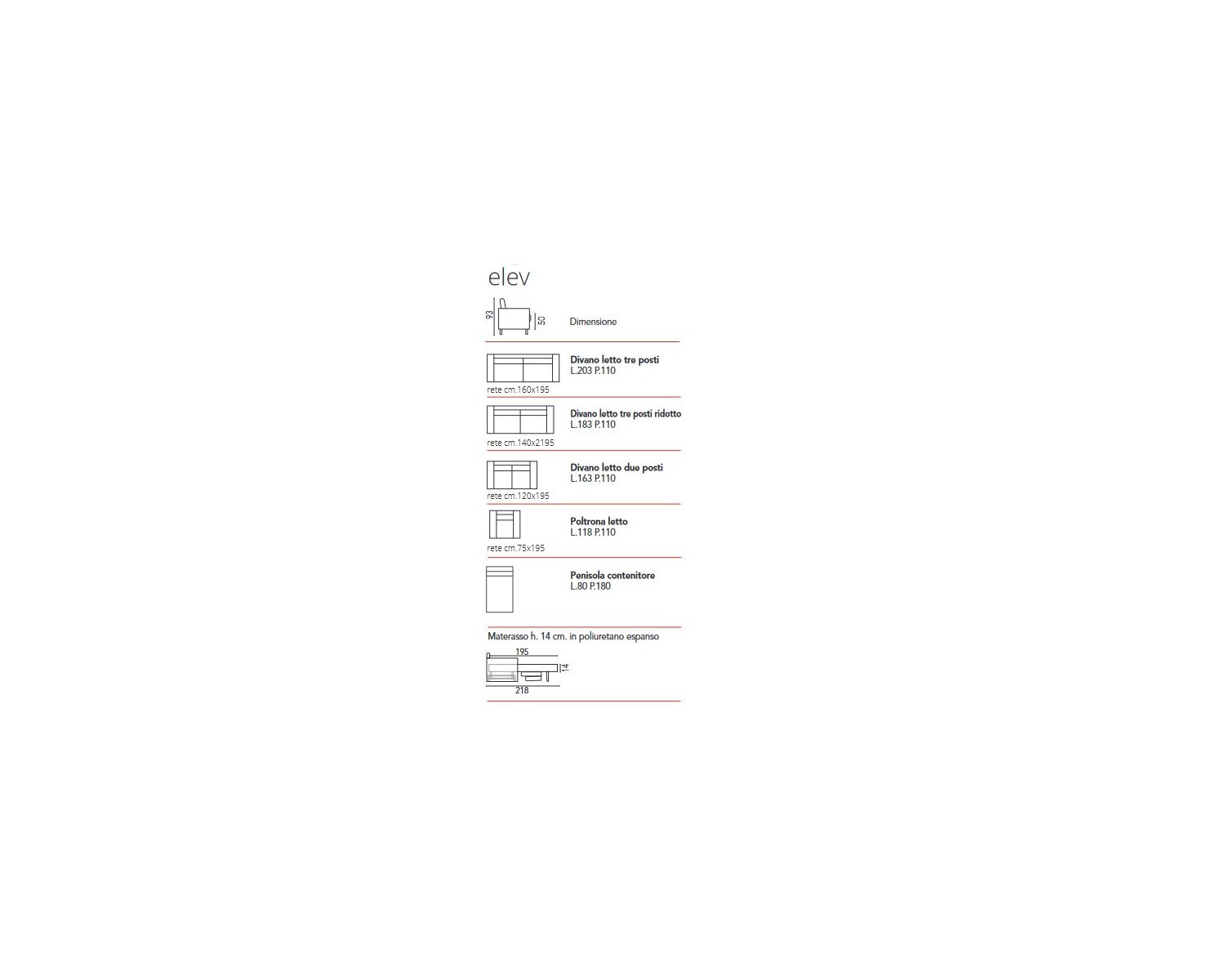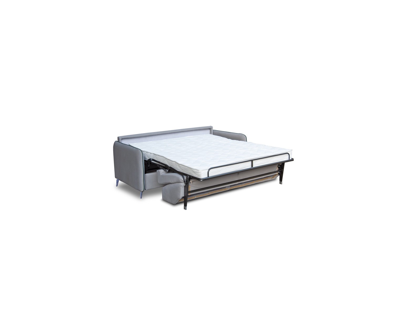 Divano letto con piede alto. Materasso 195 cmInterno in poliuretano espanso h. 14 cm., rivestito in tessuto trapuntato, comodo e di grandi dimensioni. Meccanismo Apertura agevolata con rete elettrosaldata.Struttura in acciaio, alta resistenza e durata, verniciato a forno.