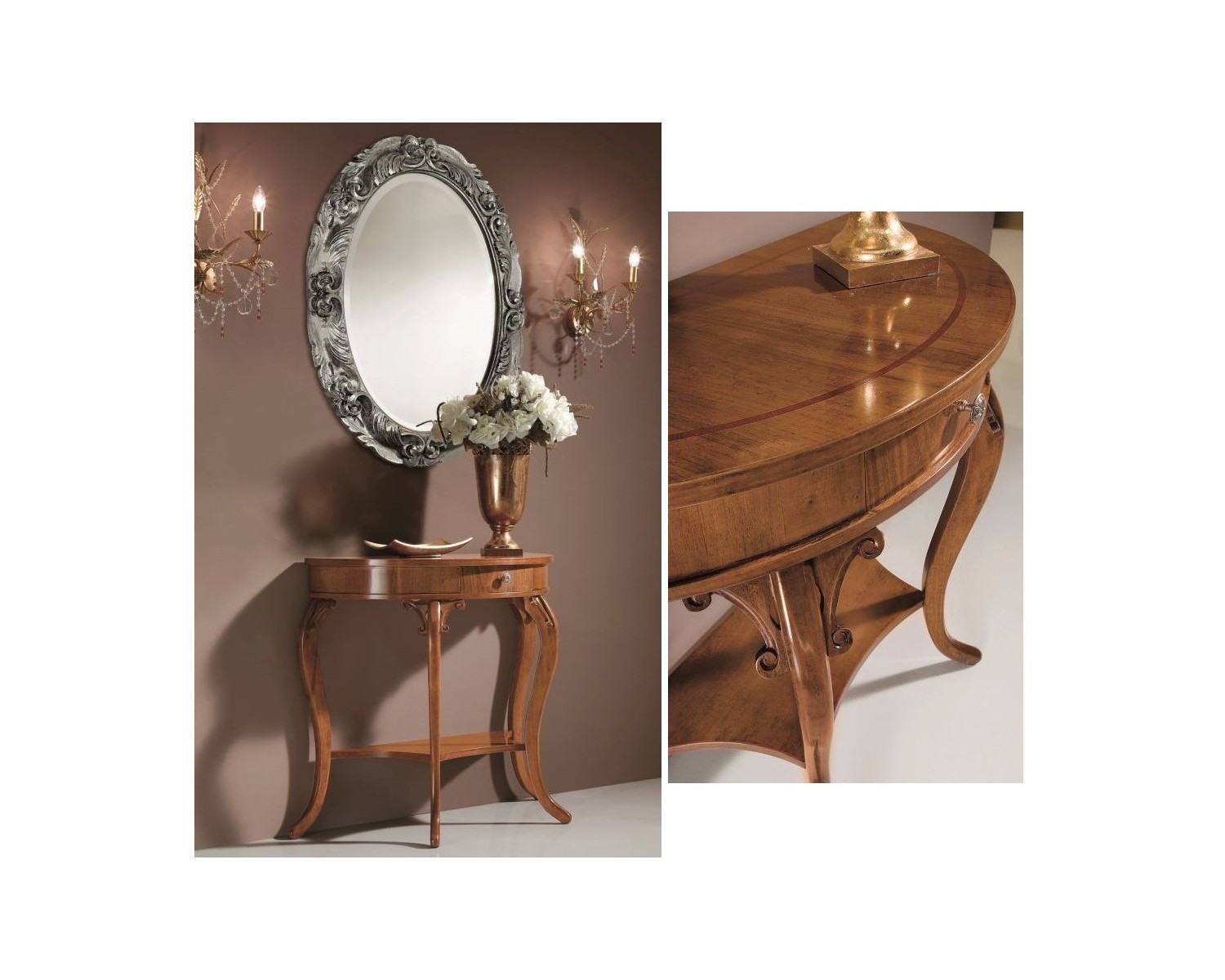 CONSOLLE SAGOMATA , CAPPETTE E PIANO LISCIO CON FILETTO L.84 H.82 P.41