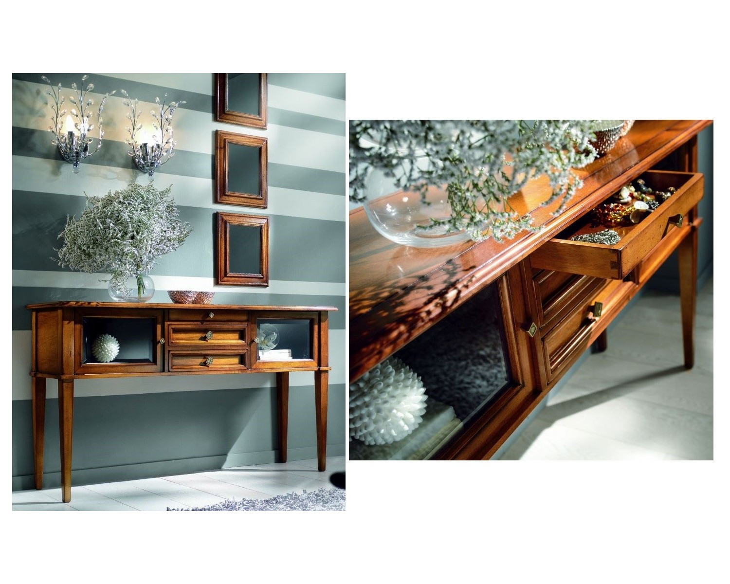CONSOLLE 3 CASSETTI 2 ANTINE VETRO L.140 H.80 P.40