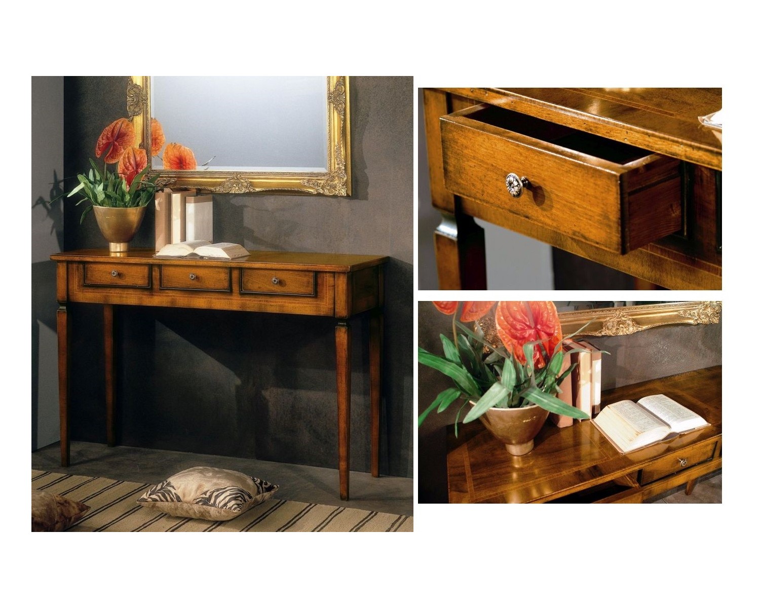 CONSOLLE CON FILETTO 3 CASSETTI L.120 H.80 P.40