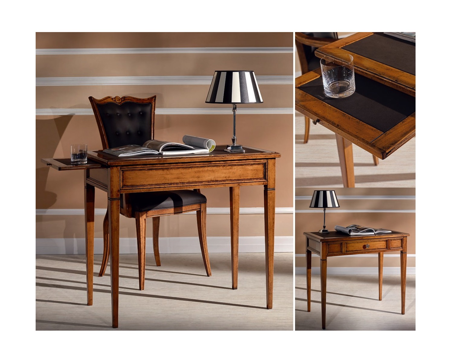 scrittoio legno massello 5 cassetti e 2 tirelle l 142 p 70 h 78