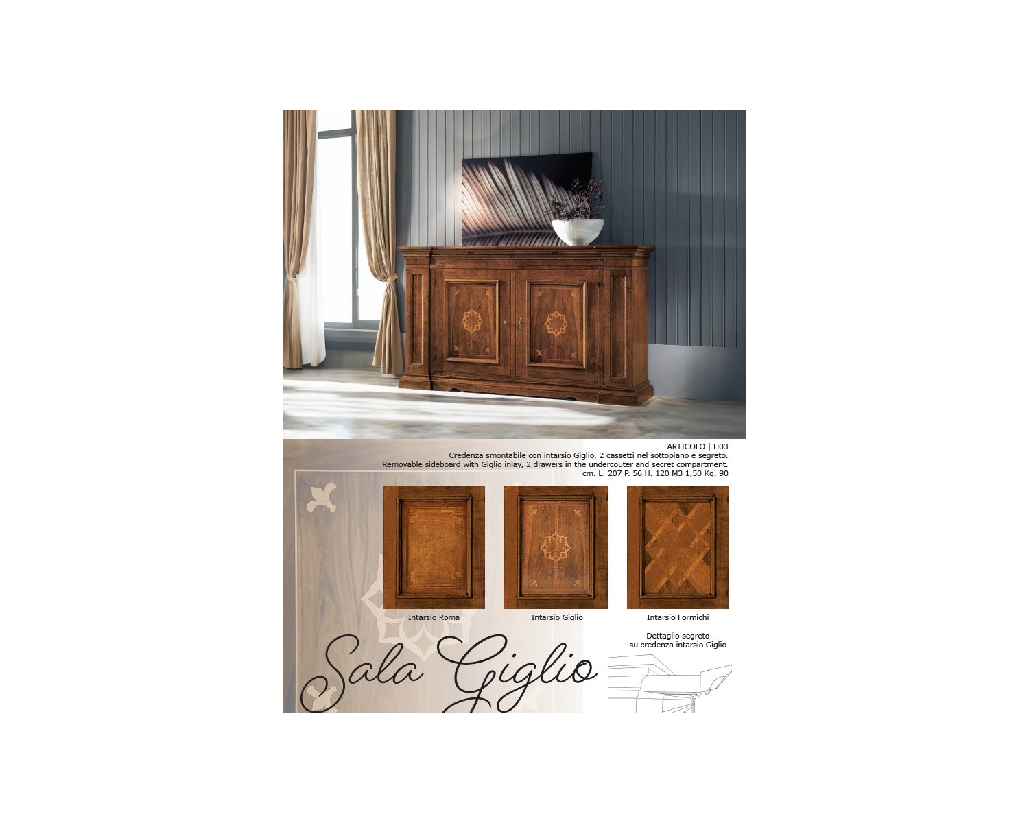 croyance élégante de style Bassano avec 2 tiroirs avec des portes secrètes et 2 .Grand qualité vénitienne, artisanat, délai de livraison 15/20 jours Expédition dans toute l'Italie DIMENSIONS L 206 P 55 H 120