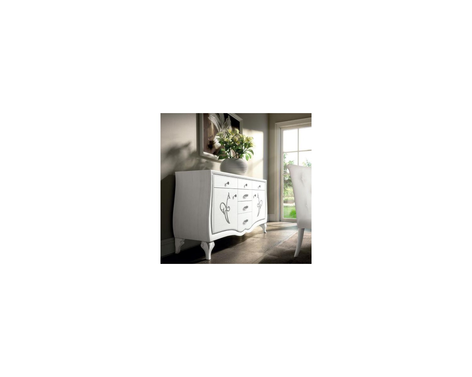 CABINET 2 PORTES AVEC DIGNITÉ 6 TIROIRS FINI PORES OUVERTS BLANC SPÉCIAL ARGENT LEAF DIMENSIONS L200 P55 H102 - RÉDUCTION DE PRODUCTION SANS INTARSIO 100 EURO-Stroke 20 JOURS DE PRODUCTION - MADE IN ITALY