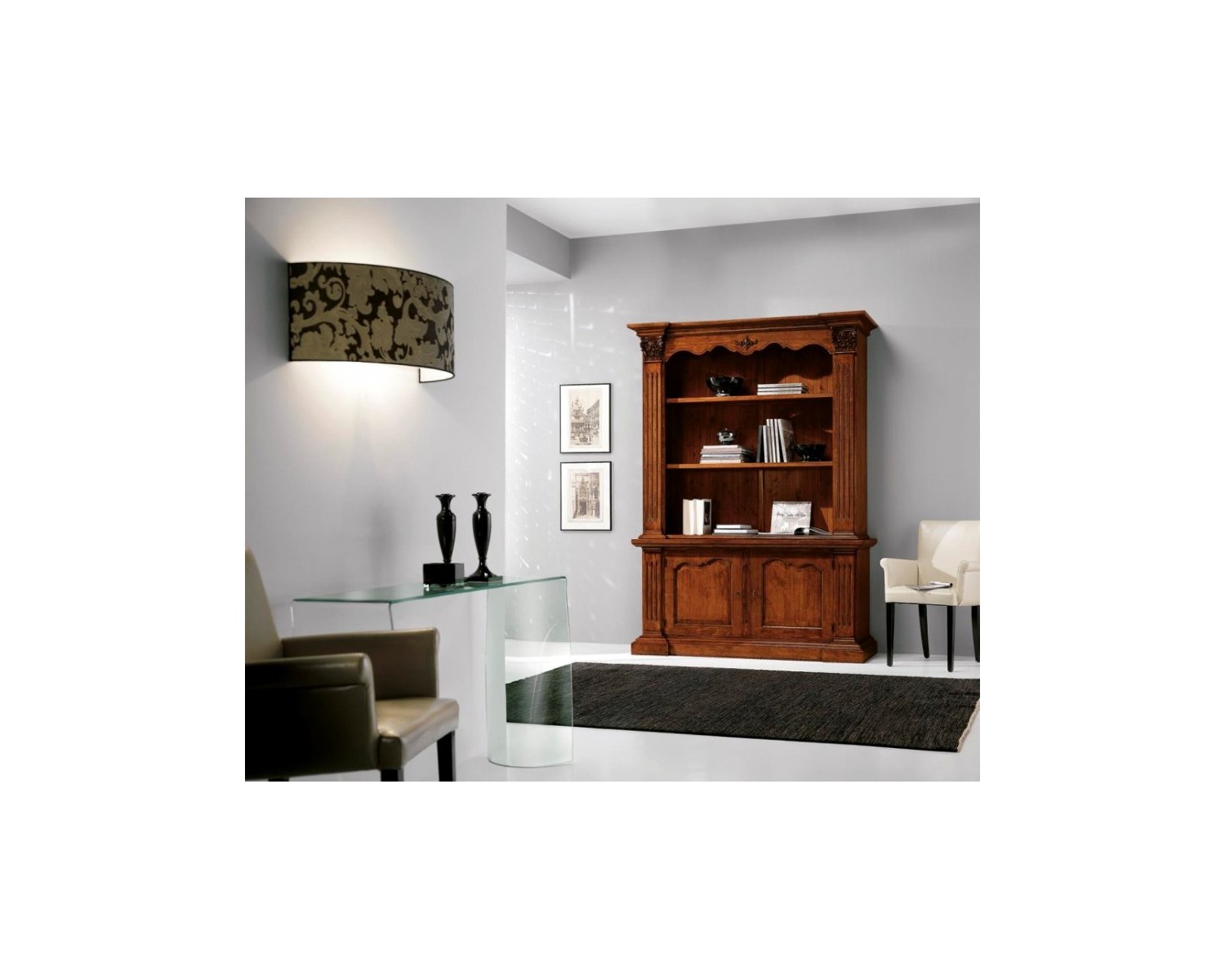 Belle bibliothèque en bois massif et étagères en noyer aggloméré .2 base de 2 portes finement sculptées dans la structure amovible colonne.e adaptation vénitienne excellente qualité, délai de livraison 15/20 jours d'expédition dans toute l'Italie DIMENSIONS L 164 P 53 H 225