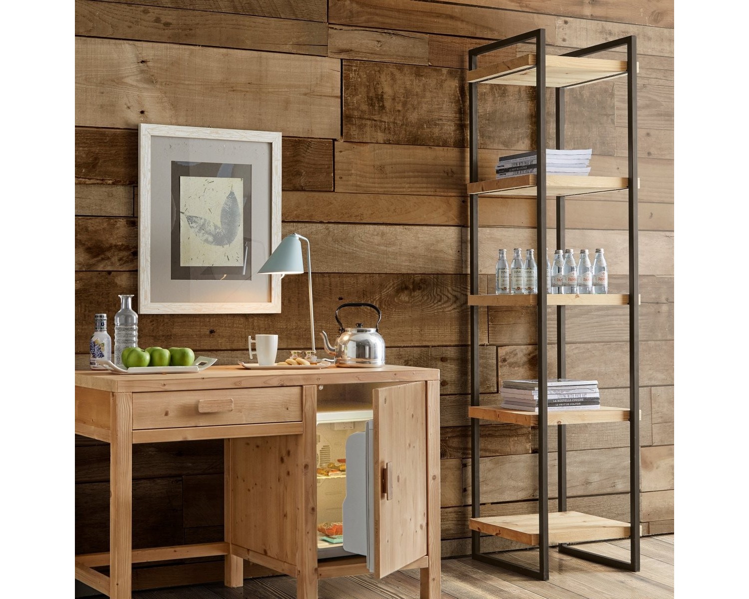 Libreria a giorno piccola 5 ripiani struttura in ferro. Cod. 3311/A Misure: Larghezza Cm. 50 Profondit Cm. 45 Altezza Cm. 205 Materiali: legno massello di Abete ferro.