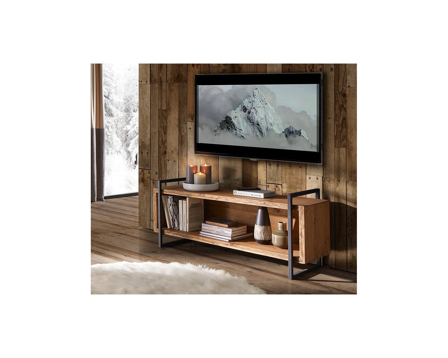 Porta tv a giorno gambe in ferro. Cod. 3313/A Misure: Larghezza Cm. 140 Profondit Cm. 45 Altezza Cm. 60 Materiali: legno massello di Abete. Gambe in ferro.