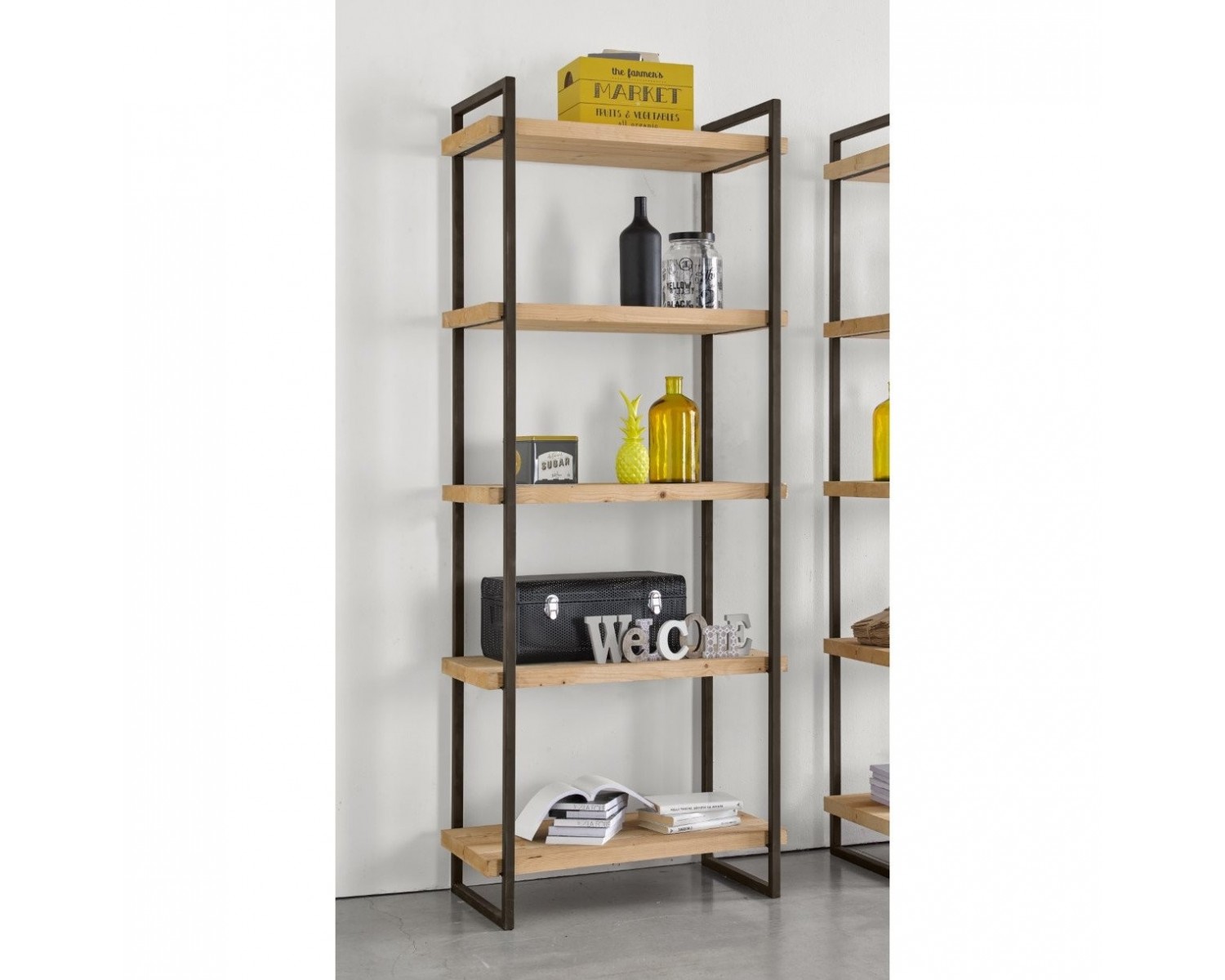 Libreria a giorno media 5 ripiani struttura in ferro. Cod. 3328/A Misure: Larghezza Cm. 80 Profondit Cm. 45 Altezza Cm. 205 Materiali: legno massello di Abete gambe in ferro.