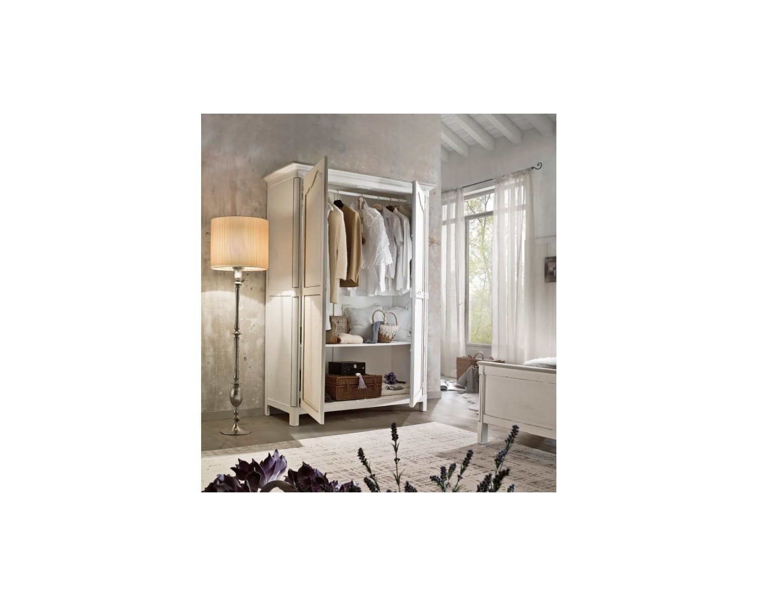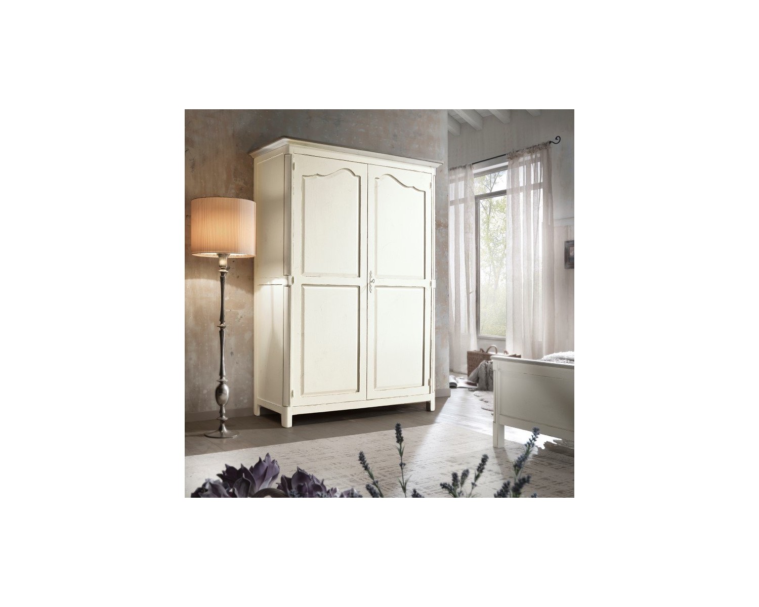 Armoire élégante 2 portes battantes 2 tiroirs en bois fini antique blanc massif - peuvent être produits en différentes couleurs -
