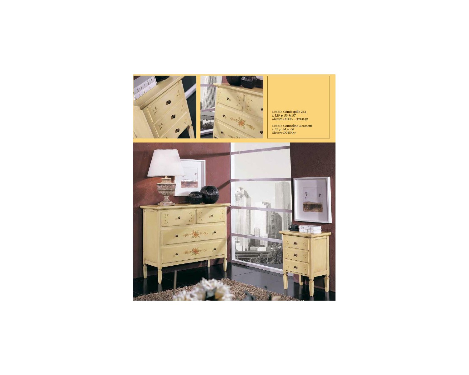 COMO + 2 COMODINI IN LEGNO DECORATI A MANO - VARI COLORI