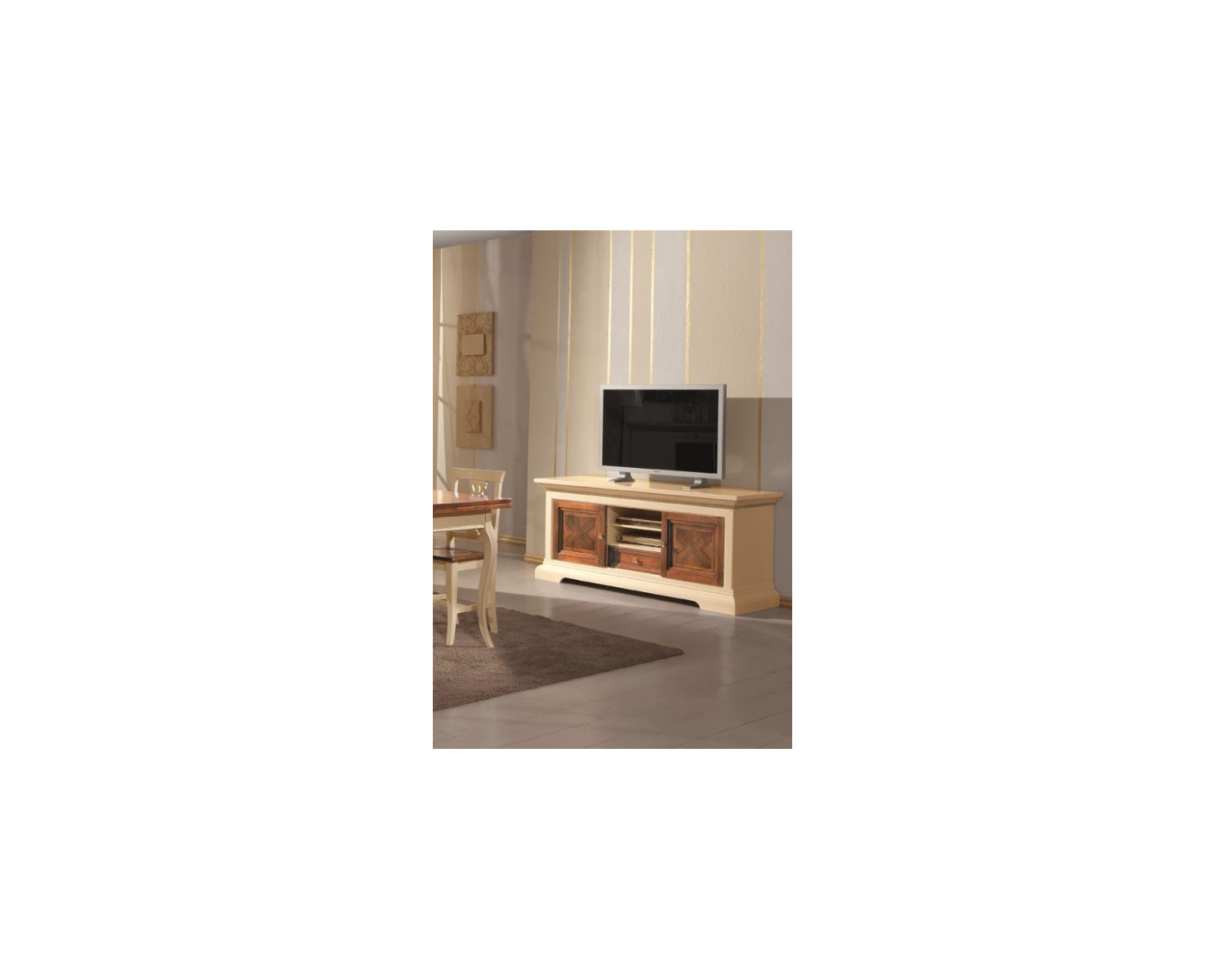 PORTA TV IN LEGNO MASSELLO BICOLORE CON INTARSIO