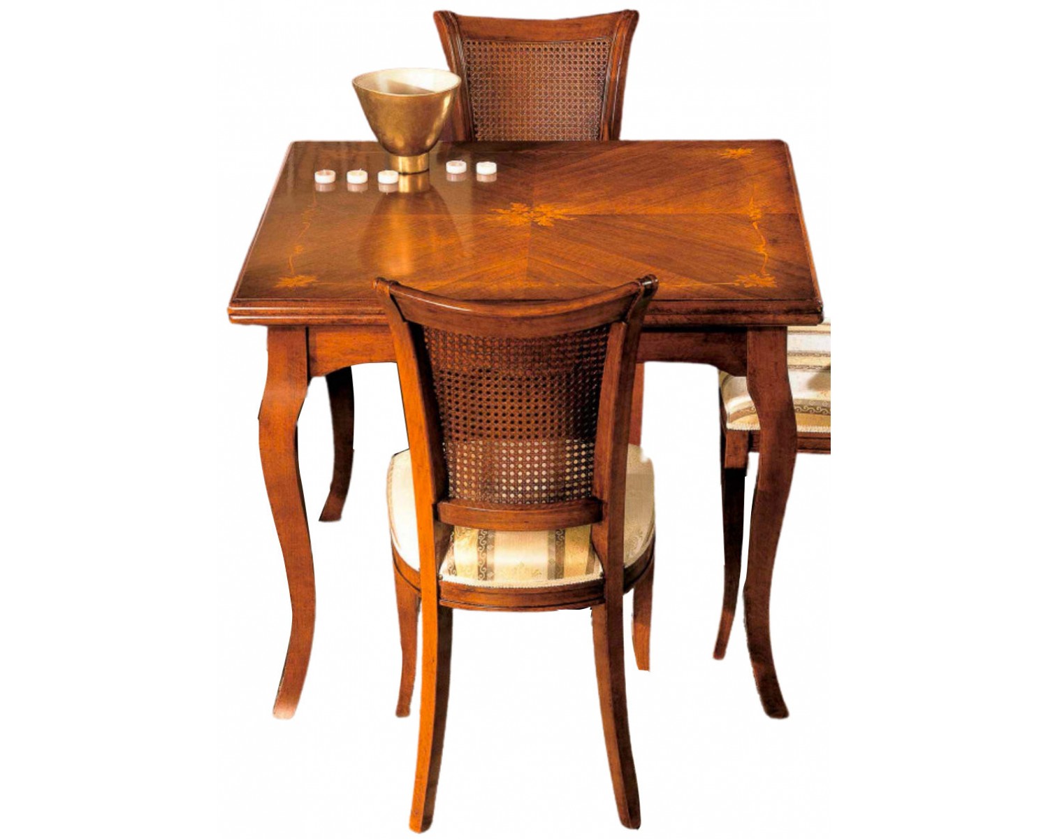 TAVOLO IN LEGNO MASSELLO INTARSIATO 100X100 ALL VARI COLORI