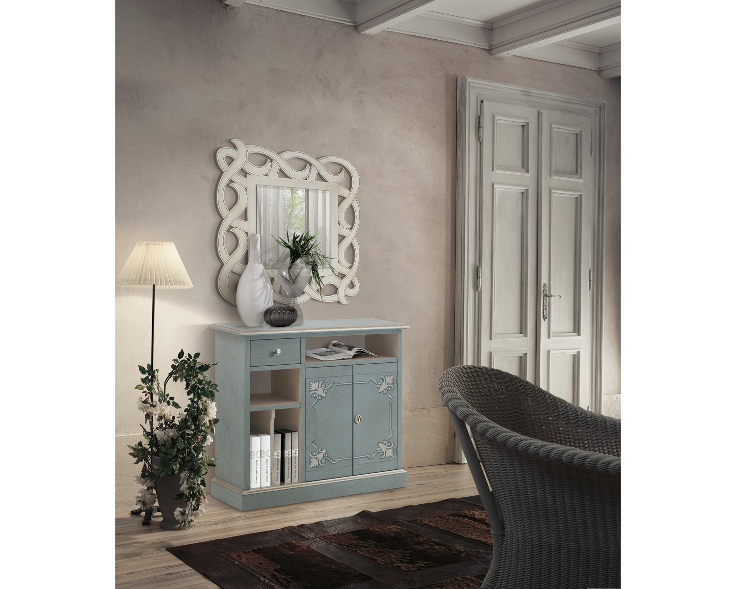 Portastereo L.90 P.47 H.87 legno massello vari colori vari decori