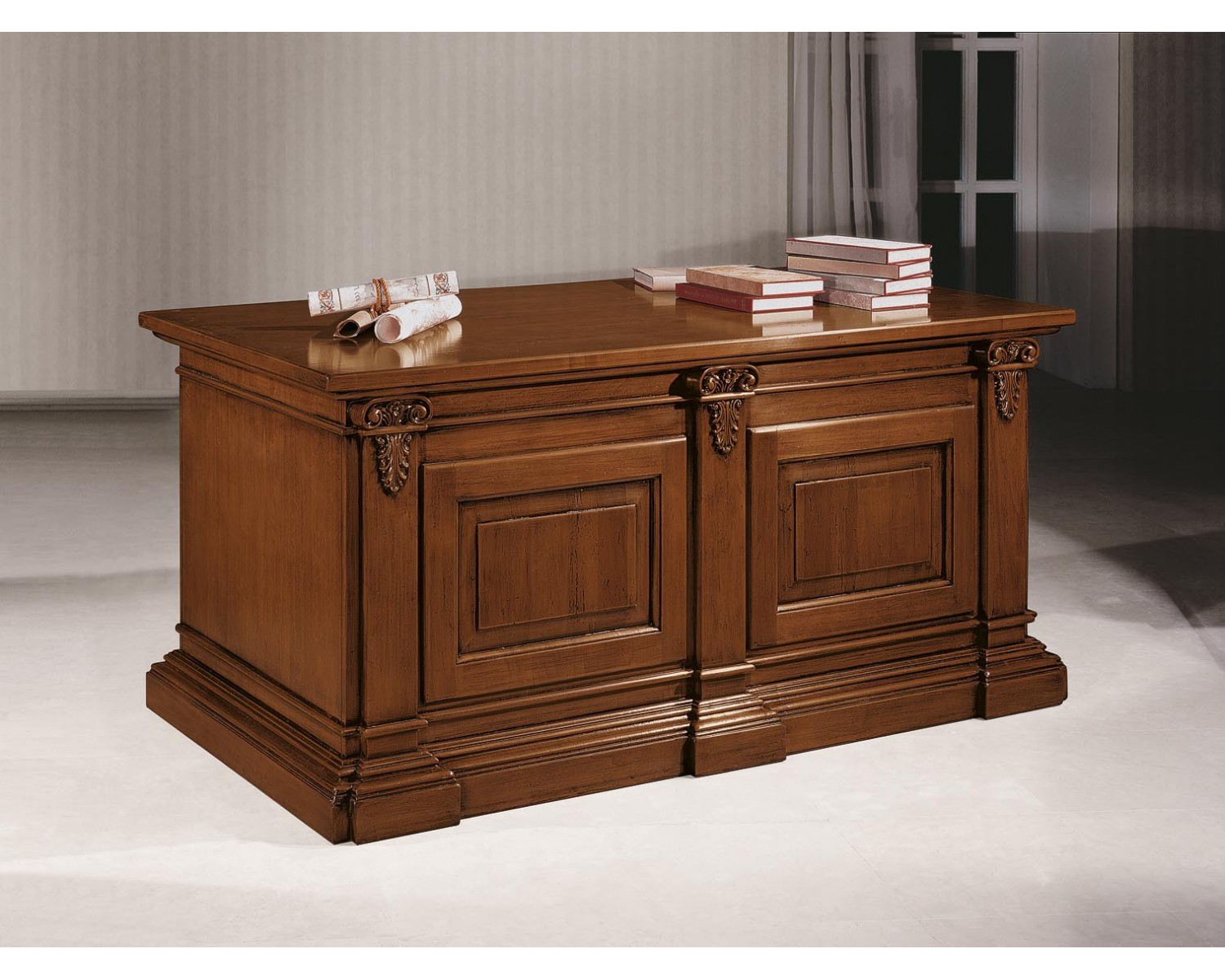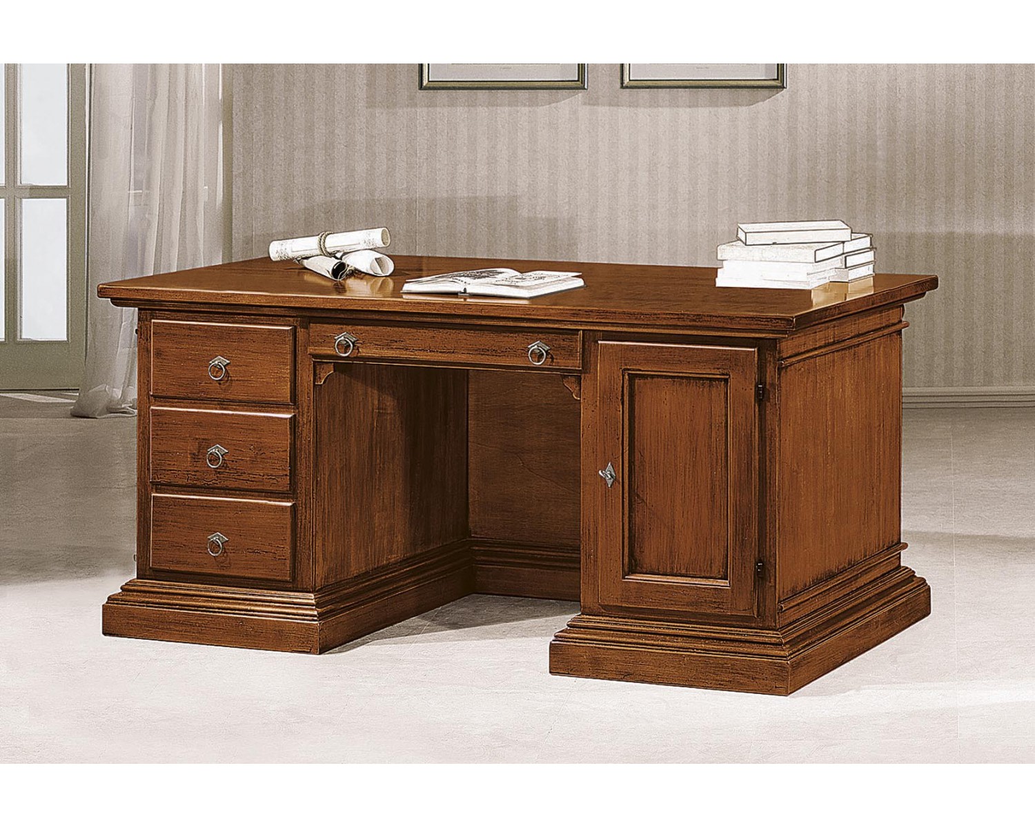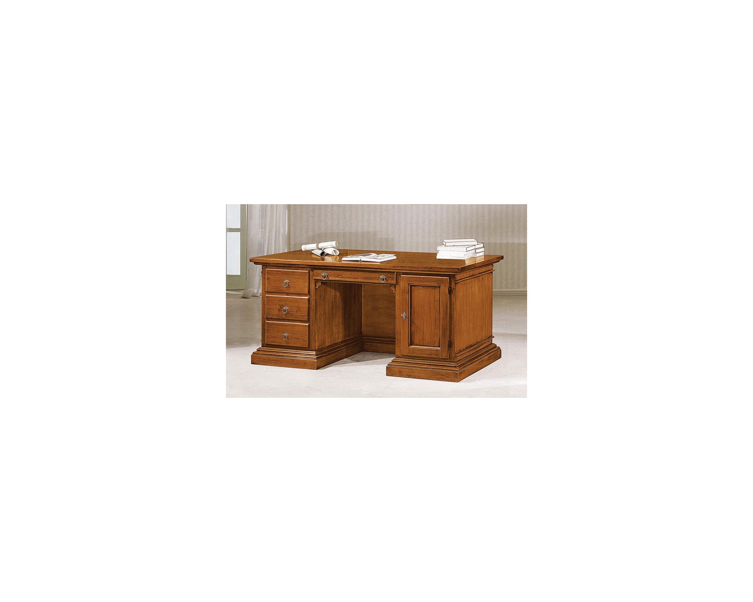 Belle table de bureau 4 tiroirs et 1 porte en bois massif et finement sculpté, couleur noyer rustique, excellente qualité de la production italienne Veneto, livraison tout au long délai de livraison Italie 15-20 jours DIMENSIONS L 170 P 80 H 78