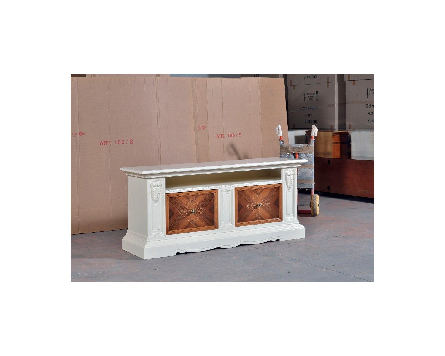 TV STAND DE BASE DE CONVICTION BOIS AVEC DEUX TONS BAS EN PHOTO INTARSIO - codluis 1020