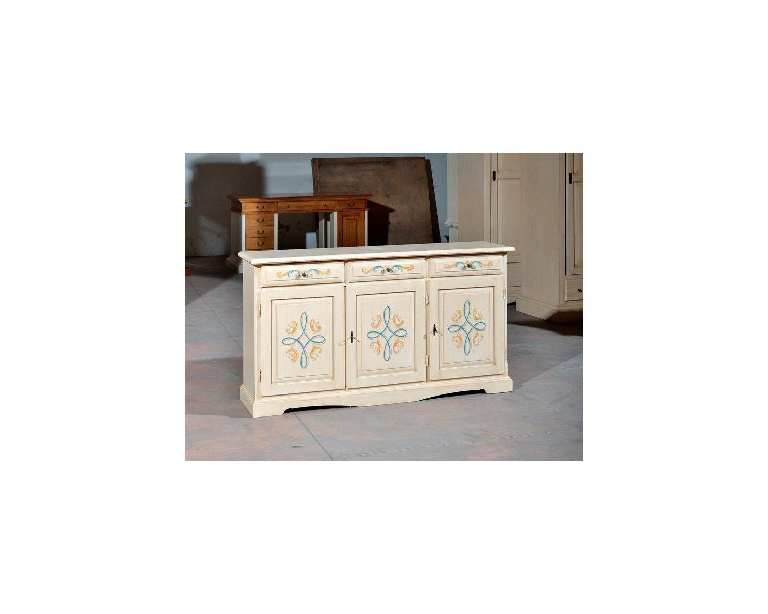 CABINET 3 PORTES EN BOIS DECORE IVORY brossé - codluis 1039