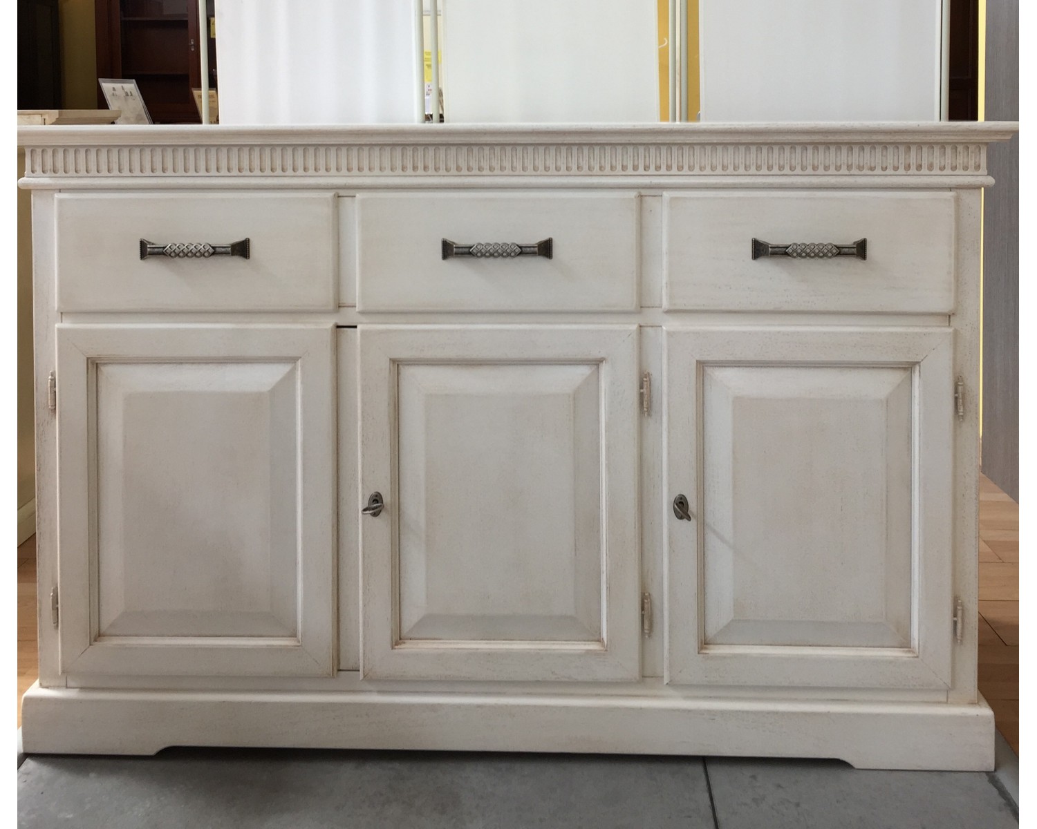 DRESSER BEAU BOIS BLANC VÉNITIEN PRODUCTION DE TEMPS 20-25 JOURS. TAILLE: L 150X45XH96 PEUT PRODUIRE EN COULEURS DIVERS VOIR TABLEAU DE COULEUR