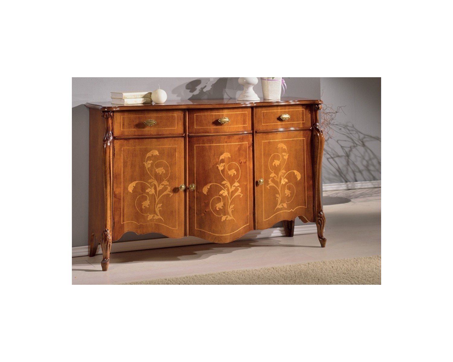 AVEC MARQUETERIE DRESSER BOIS NOYER COULEUR DIMENSIONS EN PHOTO L154 P49 H100 - MADE IN ITALY - PRODUCTION DE TEMPS 20 jours