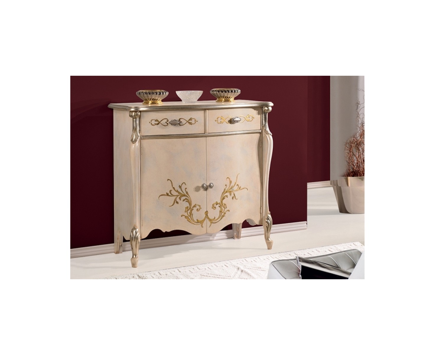 DRESSER BOIS DECORE AVEC LA MAIN PROFILS D'ARGENT Inlay PHOTO - DIMENSIONS L107 P46 H100 - MADE IN ITALY - PRODUCTION DE TEMPS 20 jours