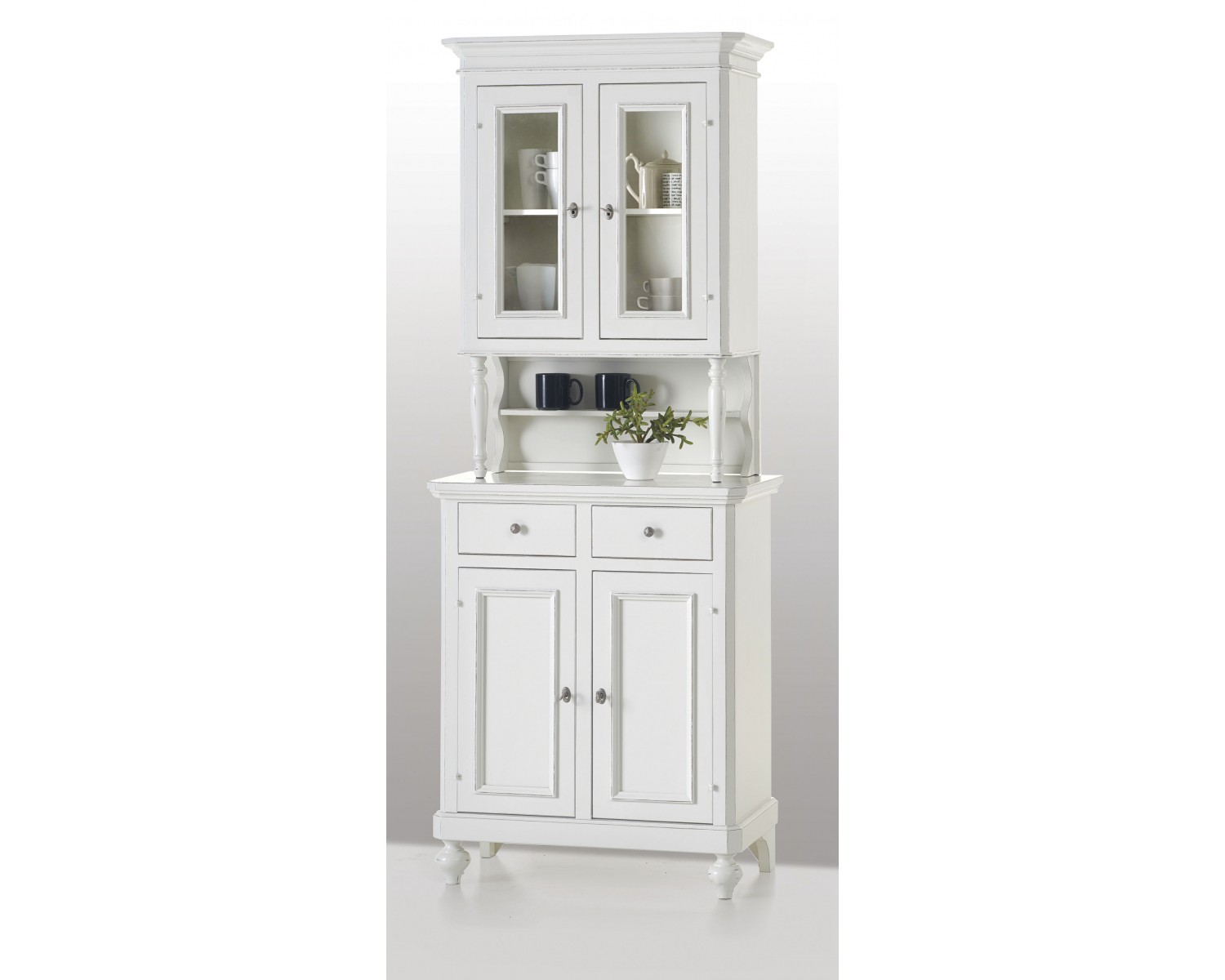 CREDENZA BASE + ALZATA L 160 P 50 H 221 VETRINA IN LEGNO MASSELLO COL BIANCO