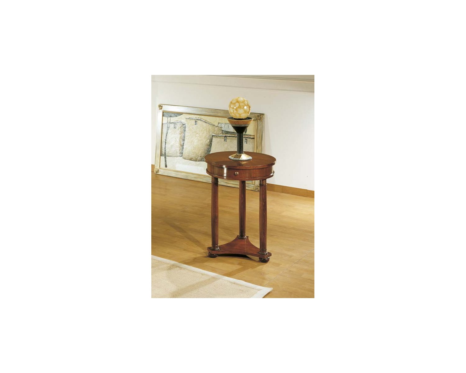 TAVOLINO IMPERO CON CASSETTO PIANO NOCE SPINAPESCE CON FILETTO D.50 H.69