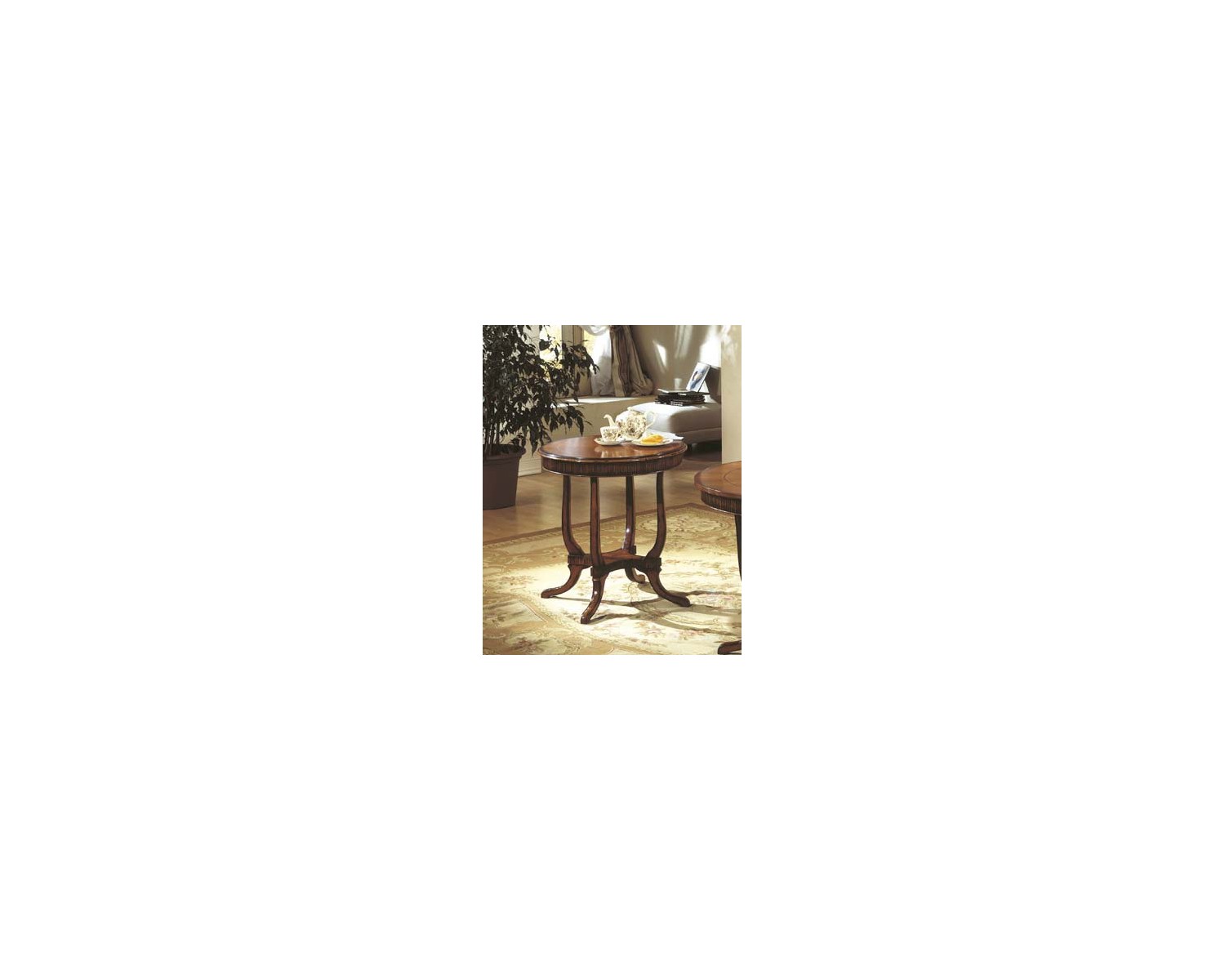 TAVOLINO ROTONDO IN NOCE CON BASE ZIGRINATA DIAM. 70 H.74