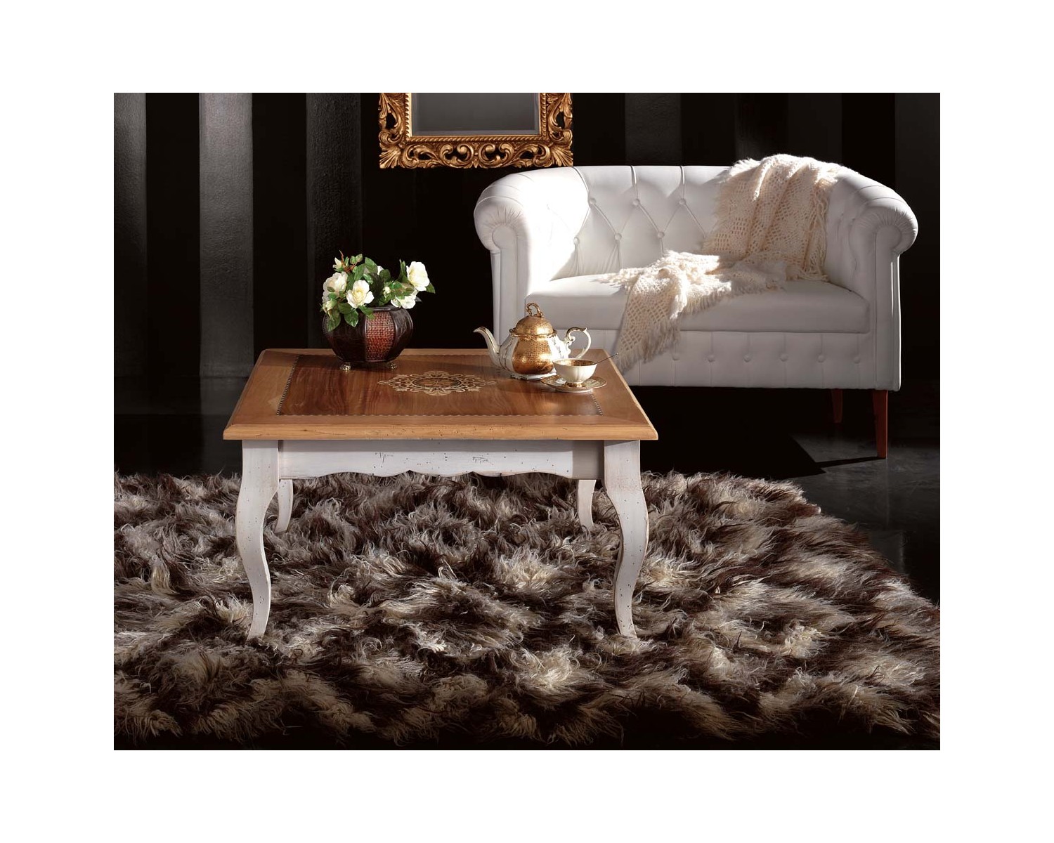 TAVOLINO QUADRATO '700 INT. MARGHERITA E GAMBE SMONTABILI L.90 H.48 P.90