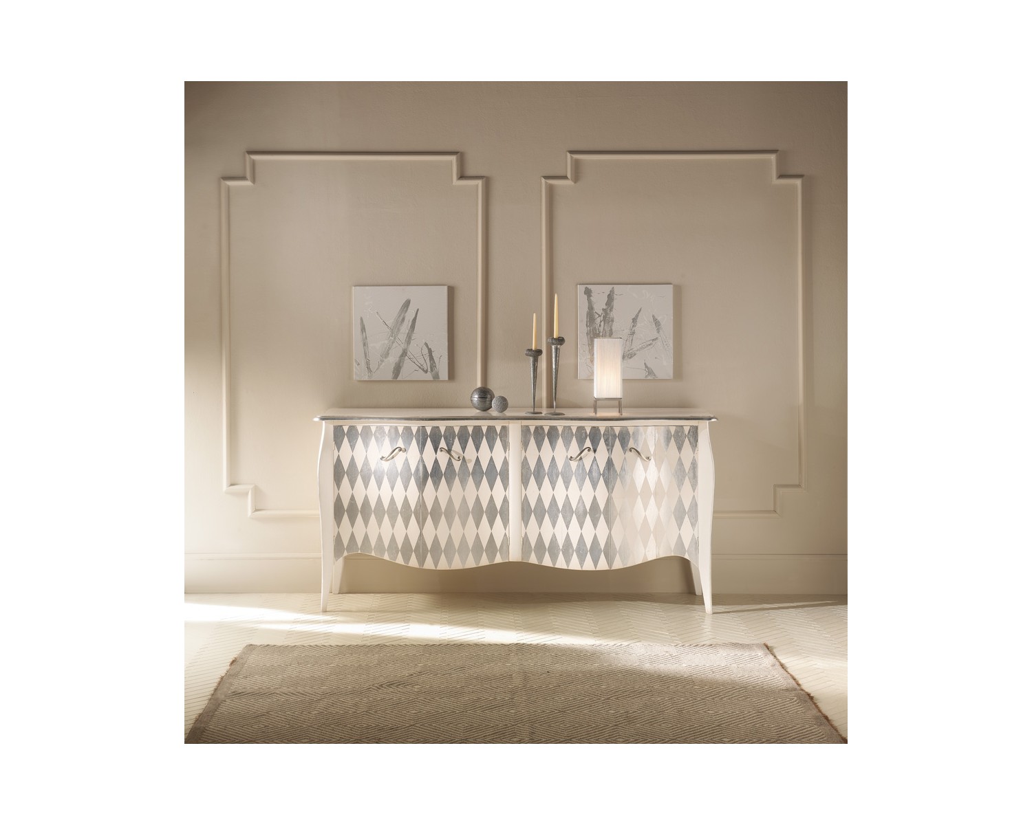 MOBILE CREDENZA LACCATO BOMBATO FOGLIA ARGENTO