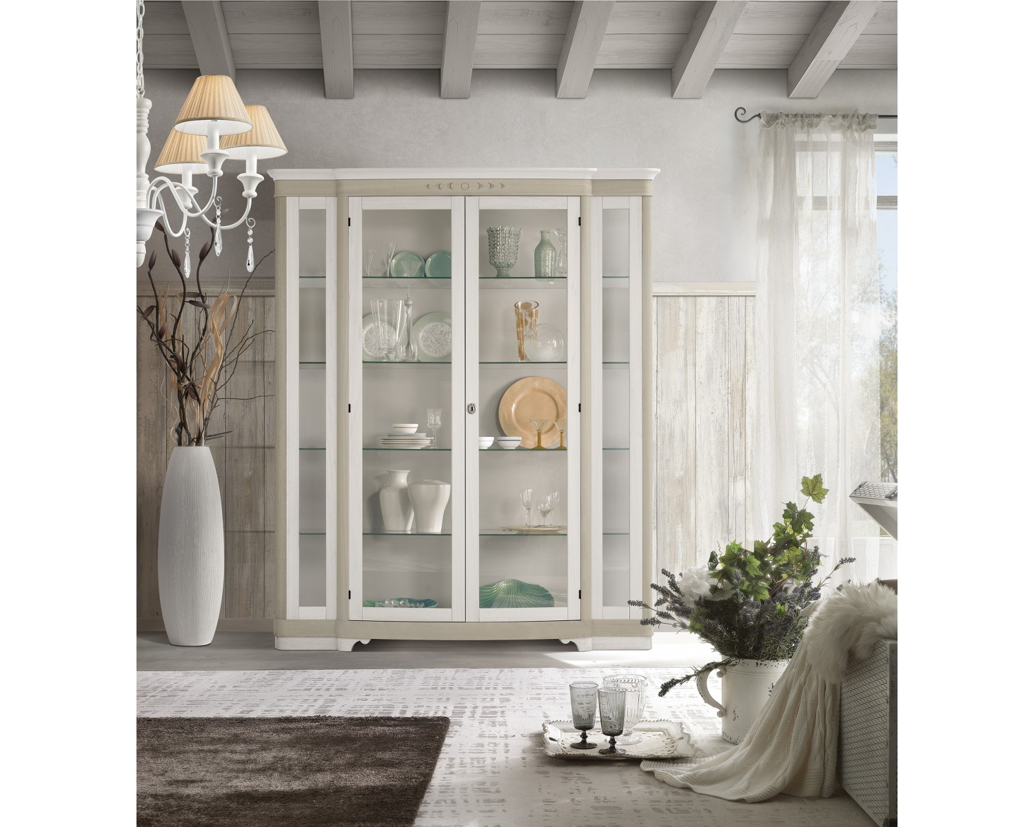 Vetrina 2 ante L.160 P.50 H.200 legno massello vari colori vari decori