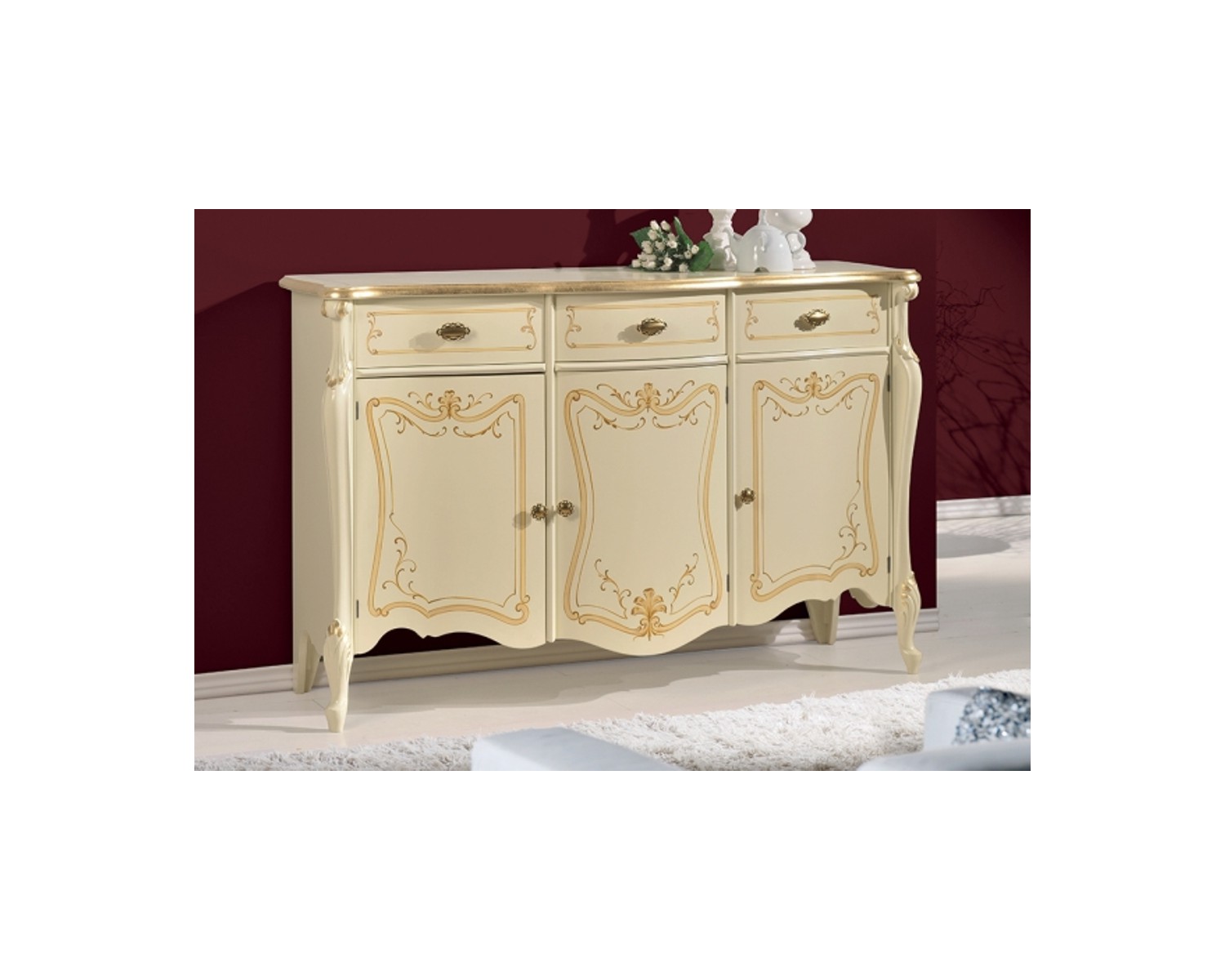 CREDENZA LEGNO MASSELLO CON INTARSIO DECORATA A MANO PROFILI ORO COME FOTO DIMENSIONI L154 P49 H100 - MADE IN ITALY - TEMPI DI PRODUZIONE 20GIORNI