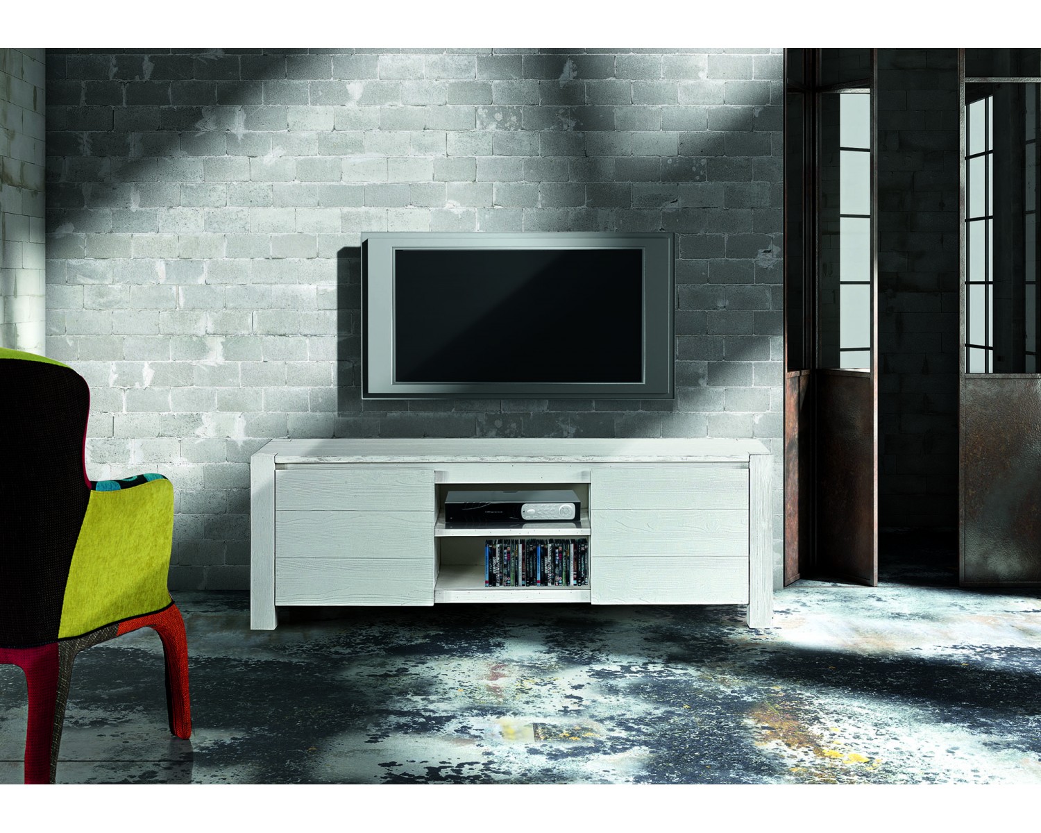 PORTA TV ABETE BIANCO SPAZZOLATO CM. 165x45