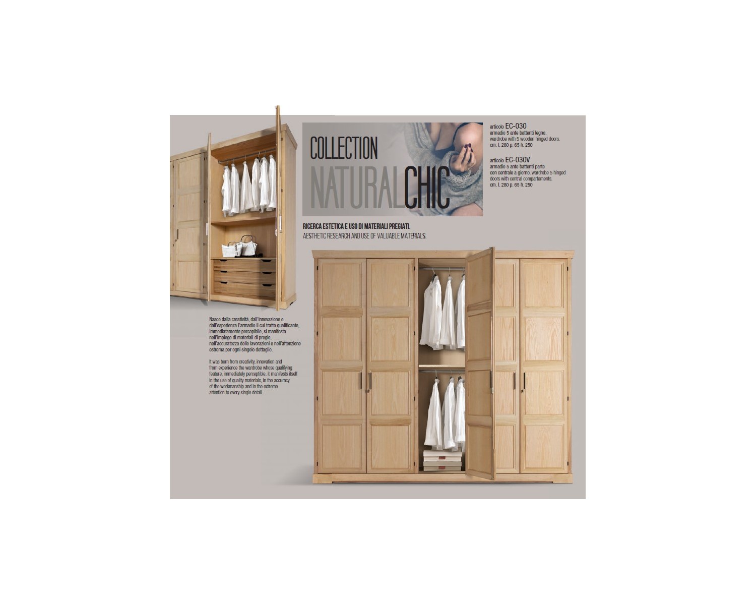 Armadio 5 ante con cassettiera L.280 P.65 H.250