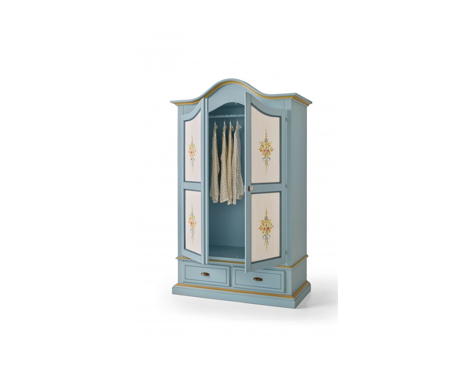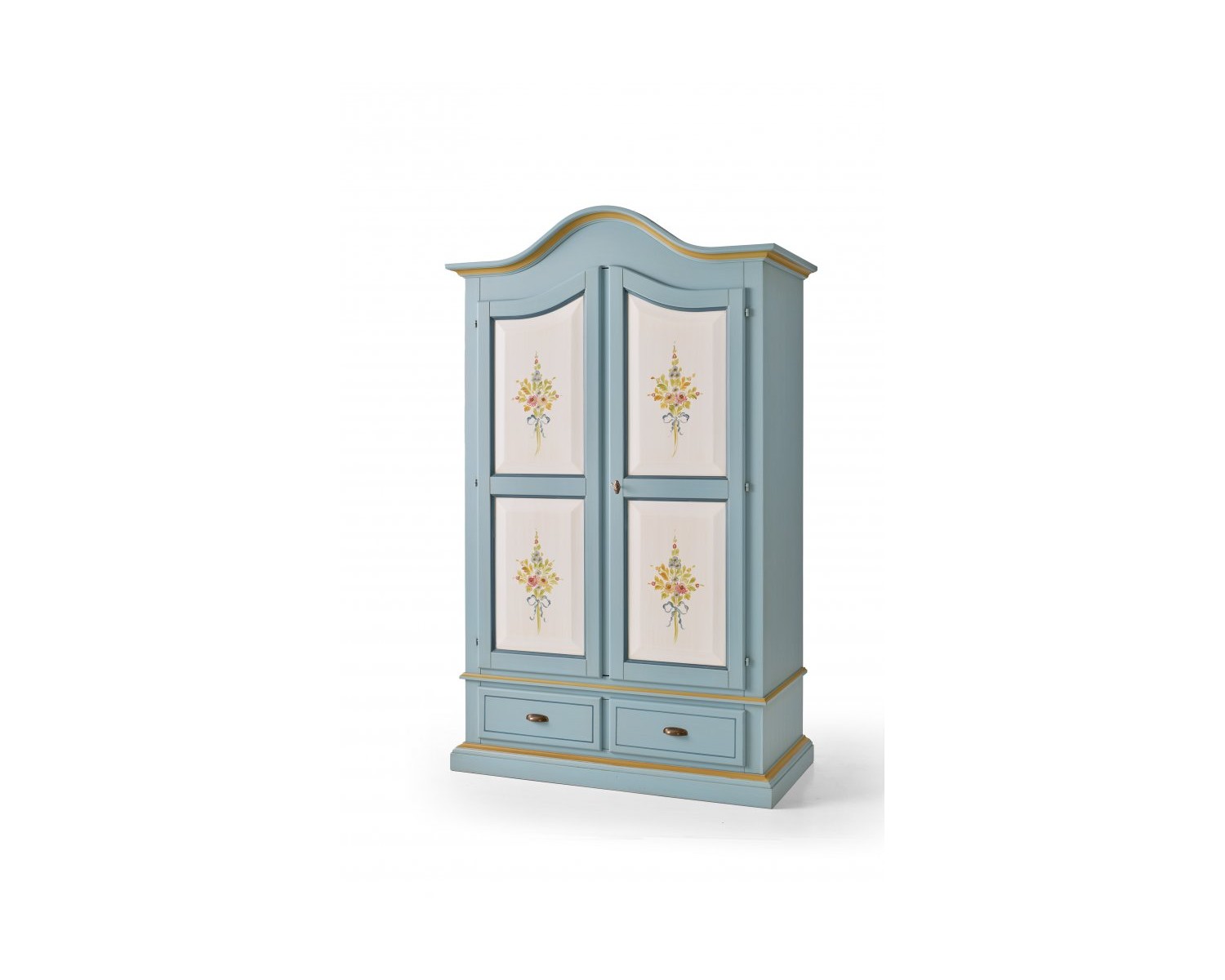 Elegante armadio 2 ante e 2 cassetti in legno massello bicolore con ante finemente decorate con motivi floreali Ottima qualit veneta,tempi di consegna 20/25 gg spedizioni in tutta Italia.